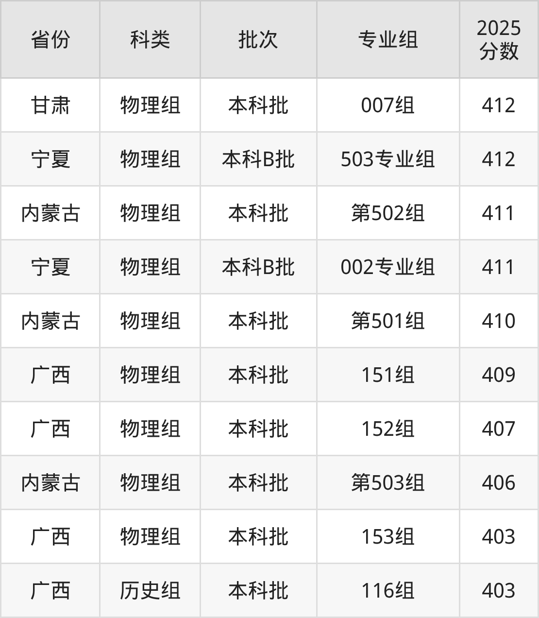 重庆人文科技学院在市外招生的最低分为403分,其中广西地区物理组考生上重庆人文科技学院的分数门槛最低,考生成绩超本科线33分(403分)可上。其次是内蒙古物理组考生,上重庆人文科技学院至少要超本科线31分(406分)。