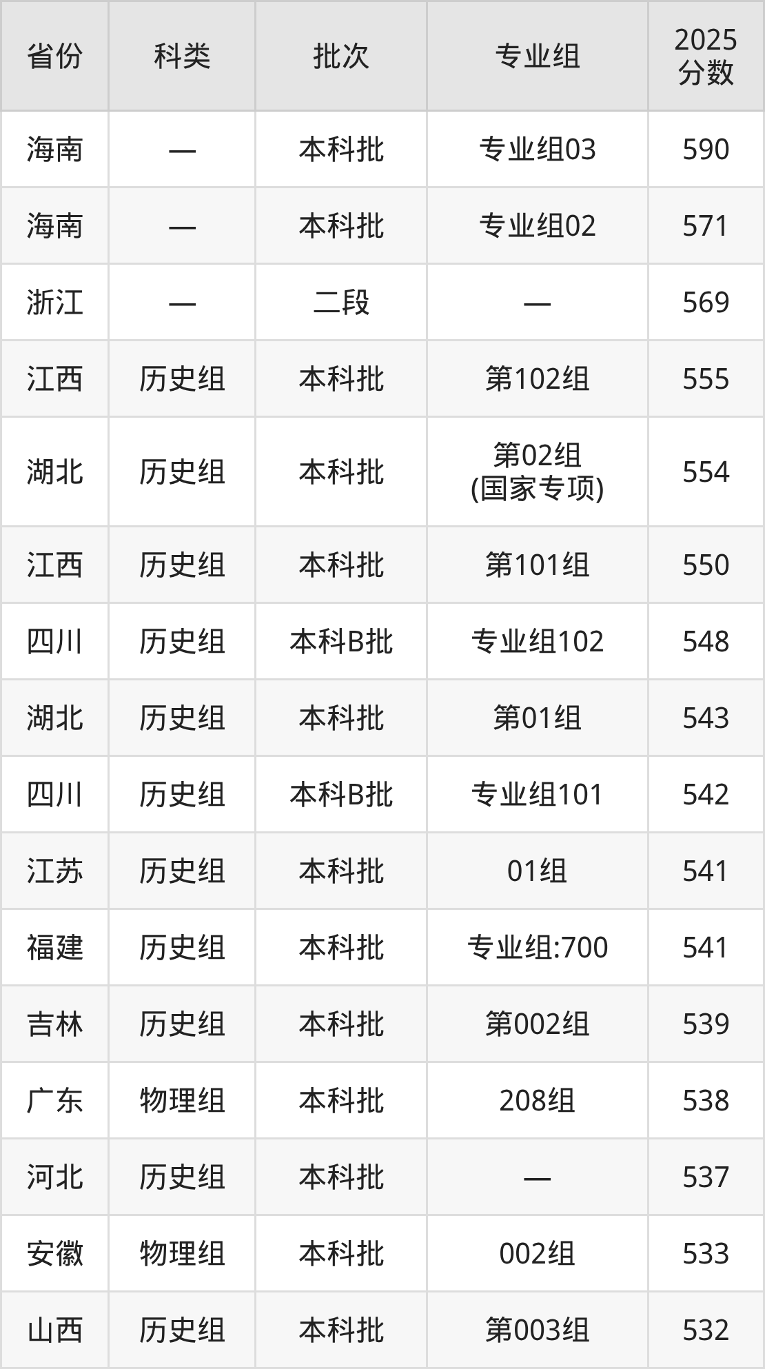 而海南地区考生的分数门槛最高,2025年闽南师范大学专业组03在海南招生最低分为590分,考生至少要超本科线110分才有可能被录取。
