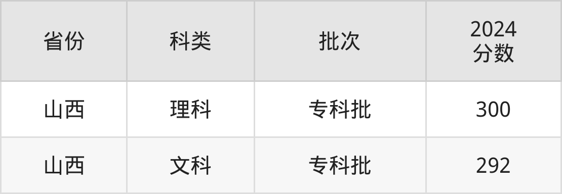 太原旅游职业学院在省内招生最低录取分数线为292分,不同地区、不同科类的考生最低分有差异。