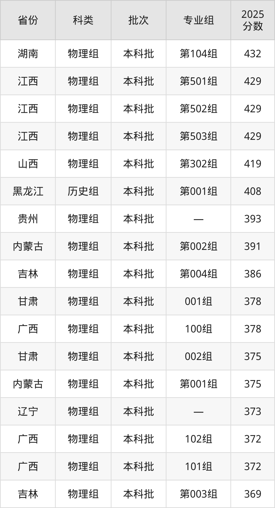 2025年齐齐哈尔工程学院在全国普通批次招生的录取分数范围位于357~491分之间,其中省内分数范围为360分~408分,历史组最低分专业组为“第001组”,考生408分即可报考,物理组最低分专业组为“第004组”,考生360分即可报考。