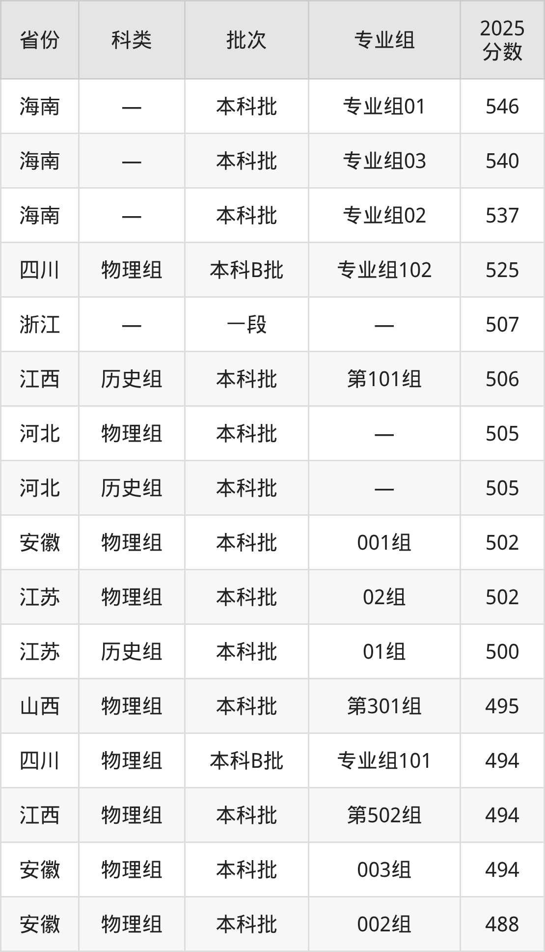而海南地区考生的分数门槛最高,2025年温州医科大学仁济学院专业组01在海南招生最低分为546分,考生至少要超本科线66分才有可能被录取。