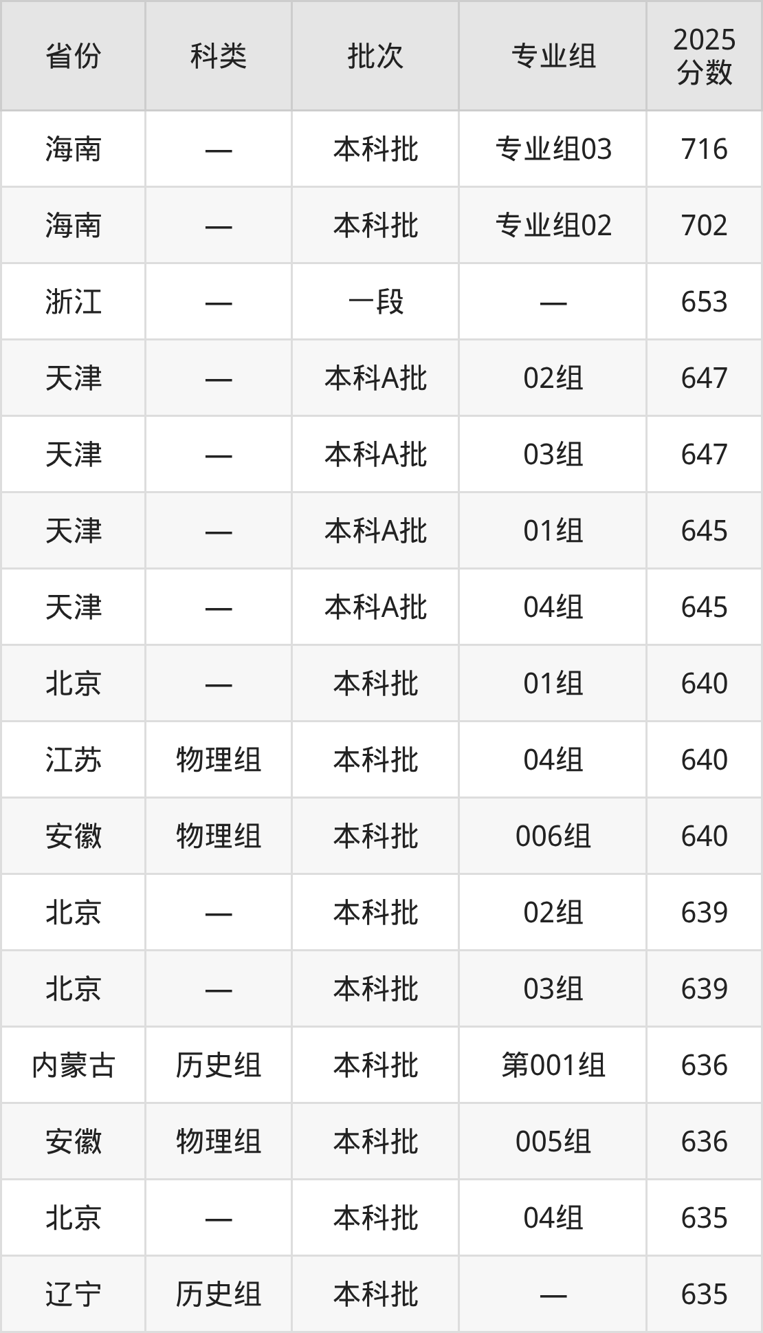 而海南地区考生的分数门槛最高,2025年上海财经大学专业组03在海南招生最低分为716分,考生至少要超本科线236分才有可能被录取。