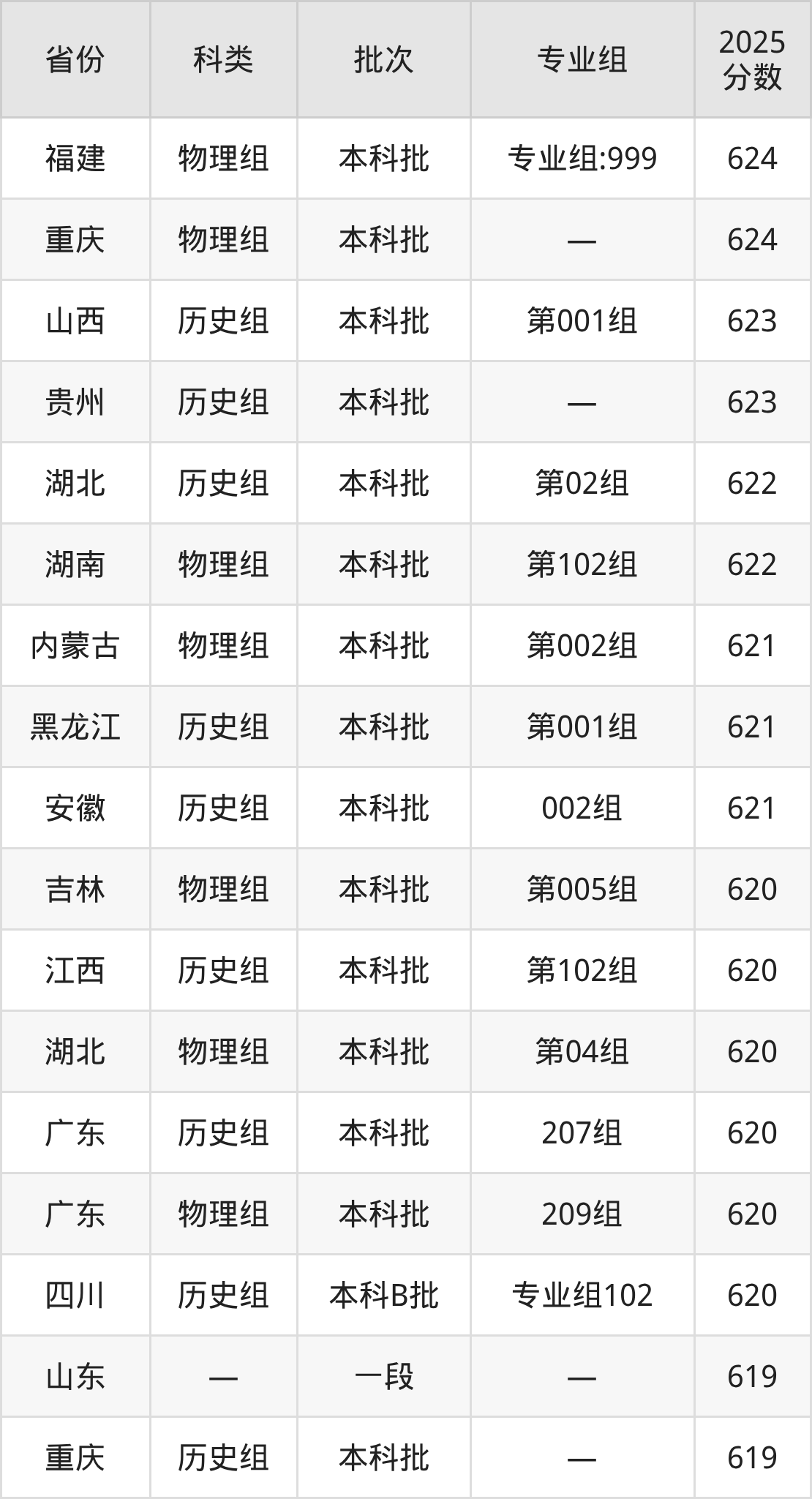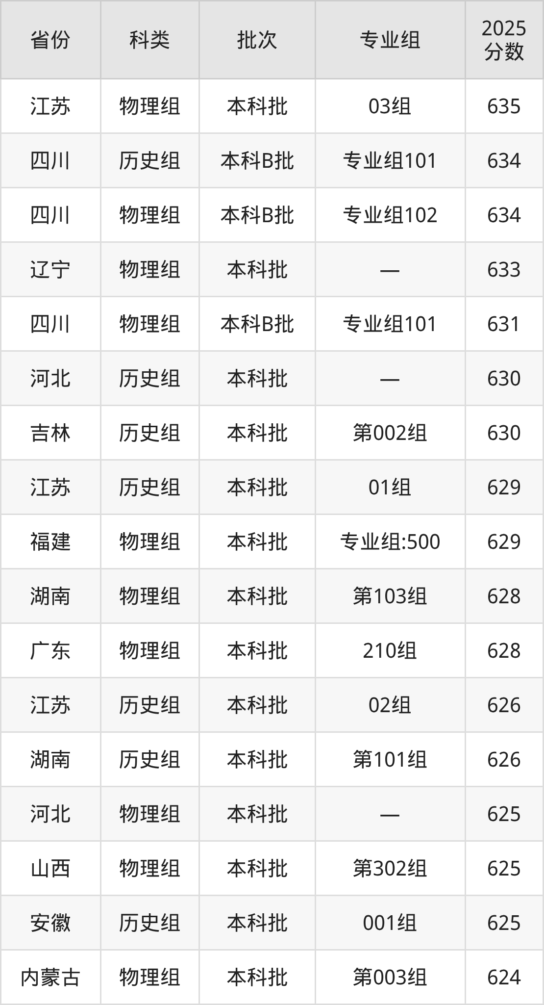 下面是上海财经大学2025年在全国各省的录取分数线一览表,供参考: