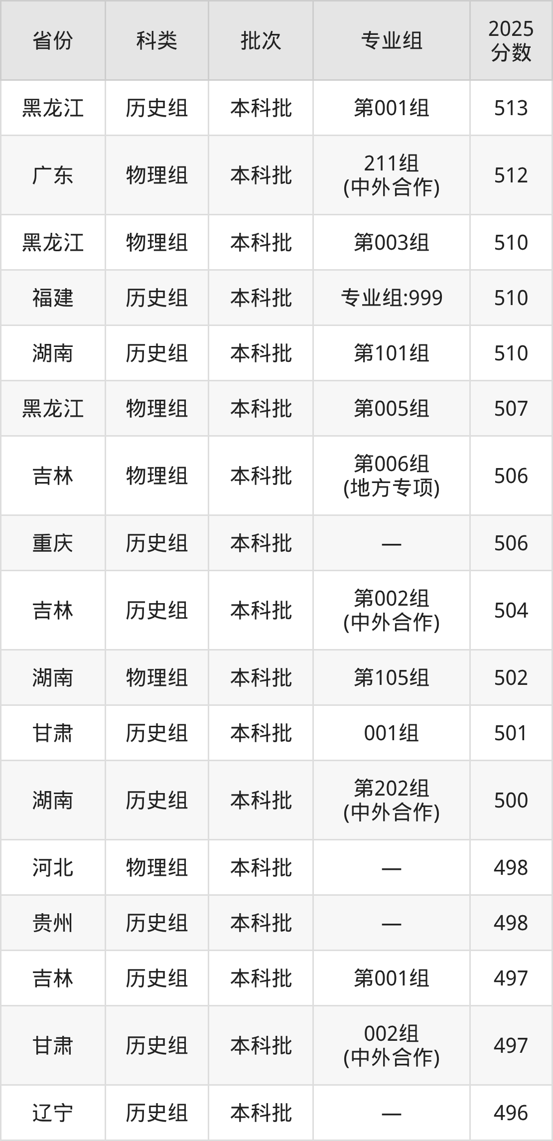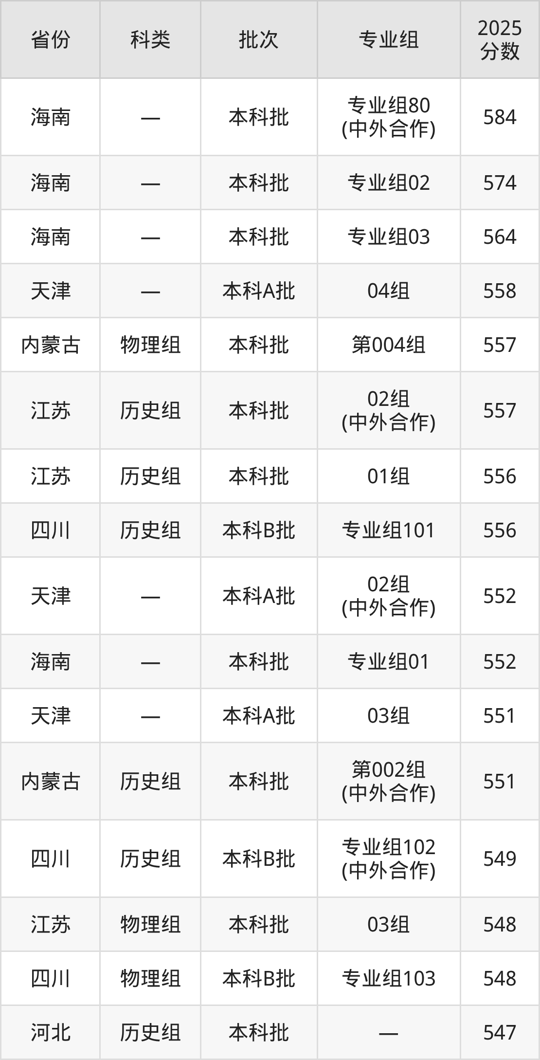 而海南地区考生的分数门槛最高,2025年吉林财经大学专业组80(中外合作)在海南招生最低分为584分,考生至少要超本科线104分才有可能被录取。