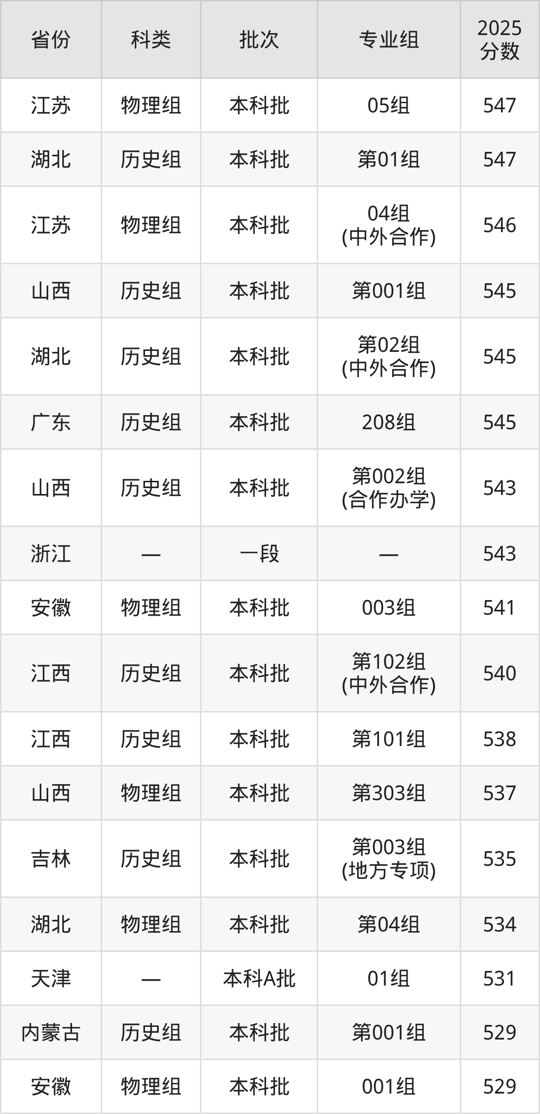 下面是吉林财经大学2025年在全国各省的录取分数线一览表,供参考:
