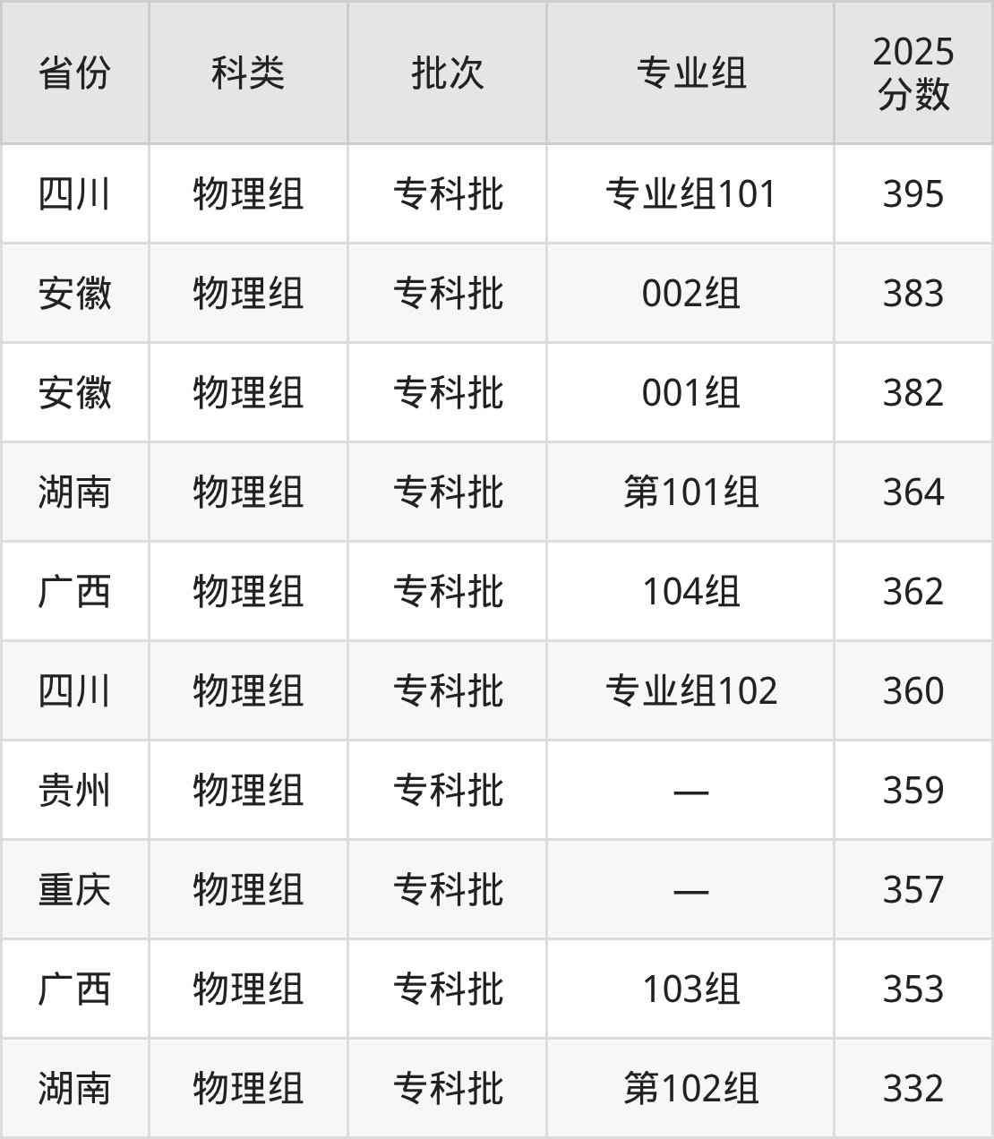 而四川地区物理组考生的分数门槛最高,2025年云南交通职业技术学院专业组101在四川招生最低分为395分,考生至少要超专科线245分才有可能被录取。