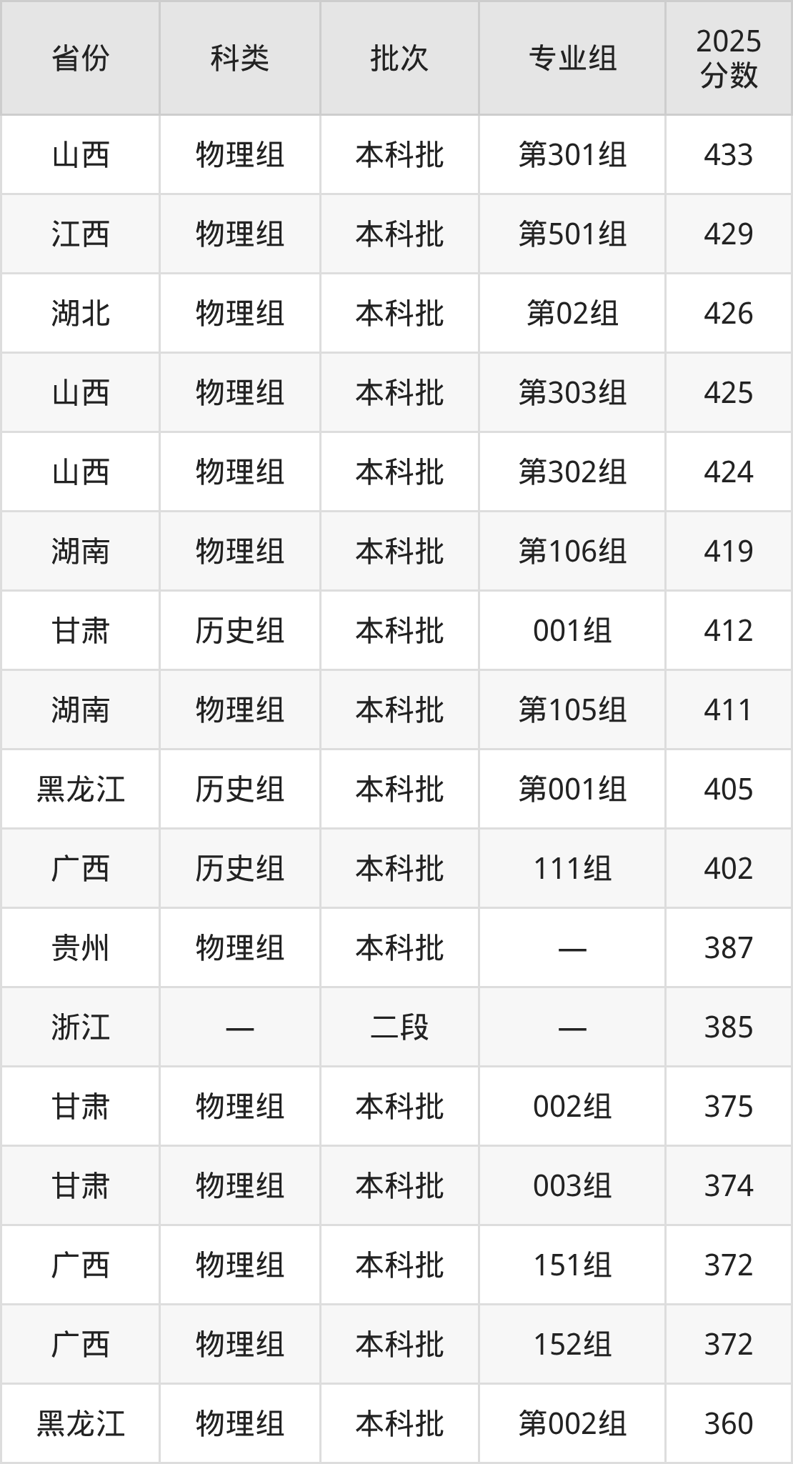 下面是浙江越秀外国语学院2025年在全国各省的录取分数线一览表,供参考: