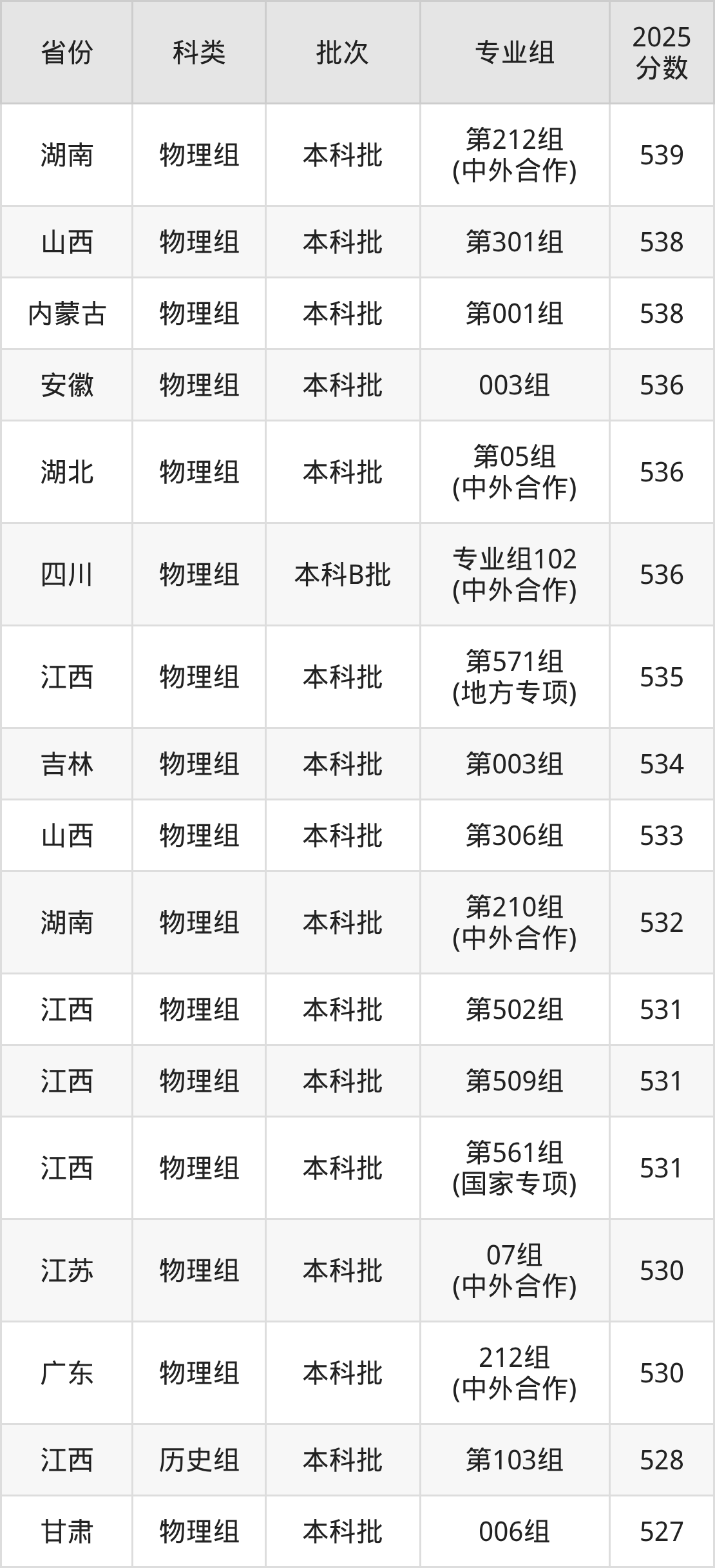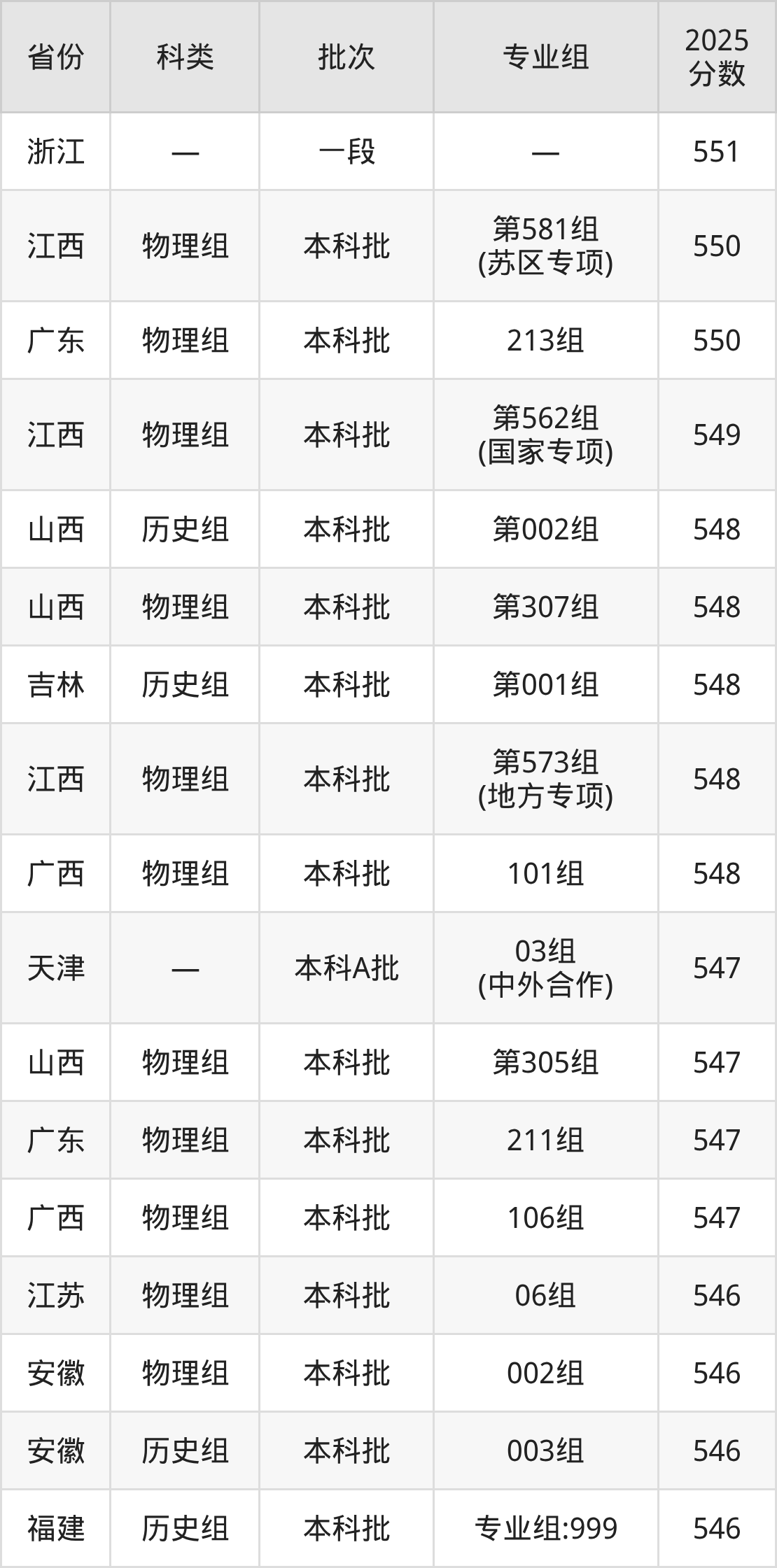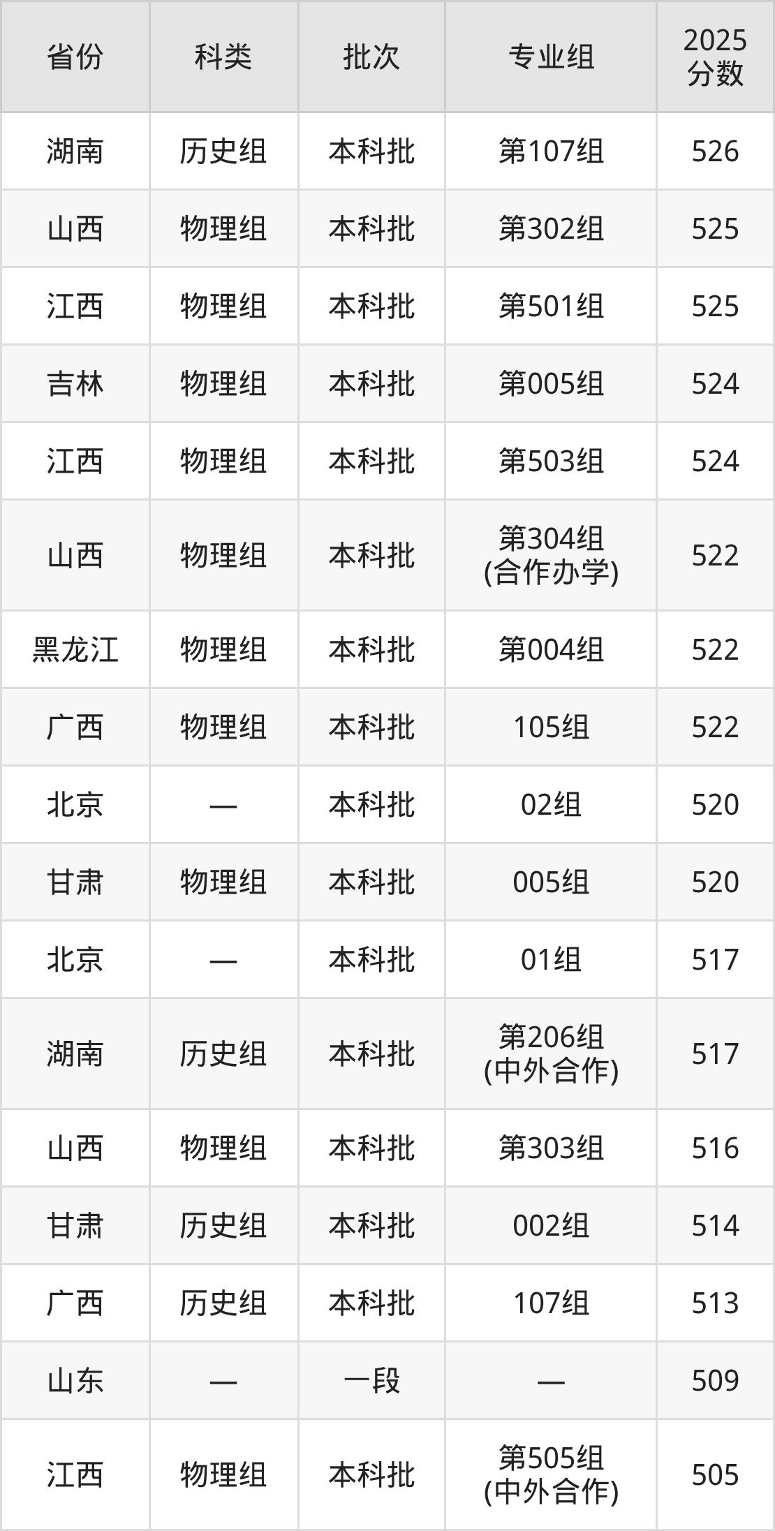 2025年华东交通大学在全国普通批次招生的录取分数范围位于474~618分之间,其中省内分数范围为494分~573分,历史组最低分专业组为“第103组”,考生528分即可报考,物理组最低分专业组为“第504组”,考生494分即可报考。