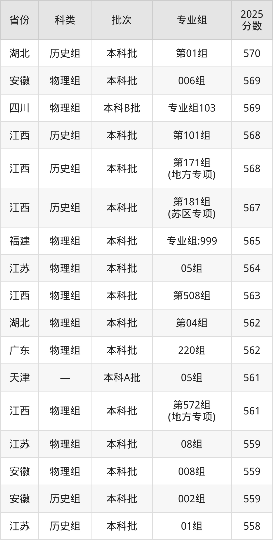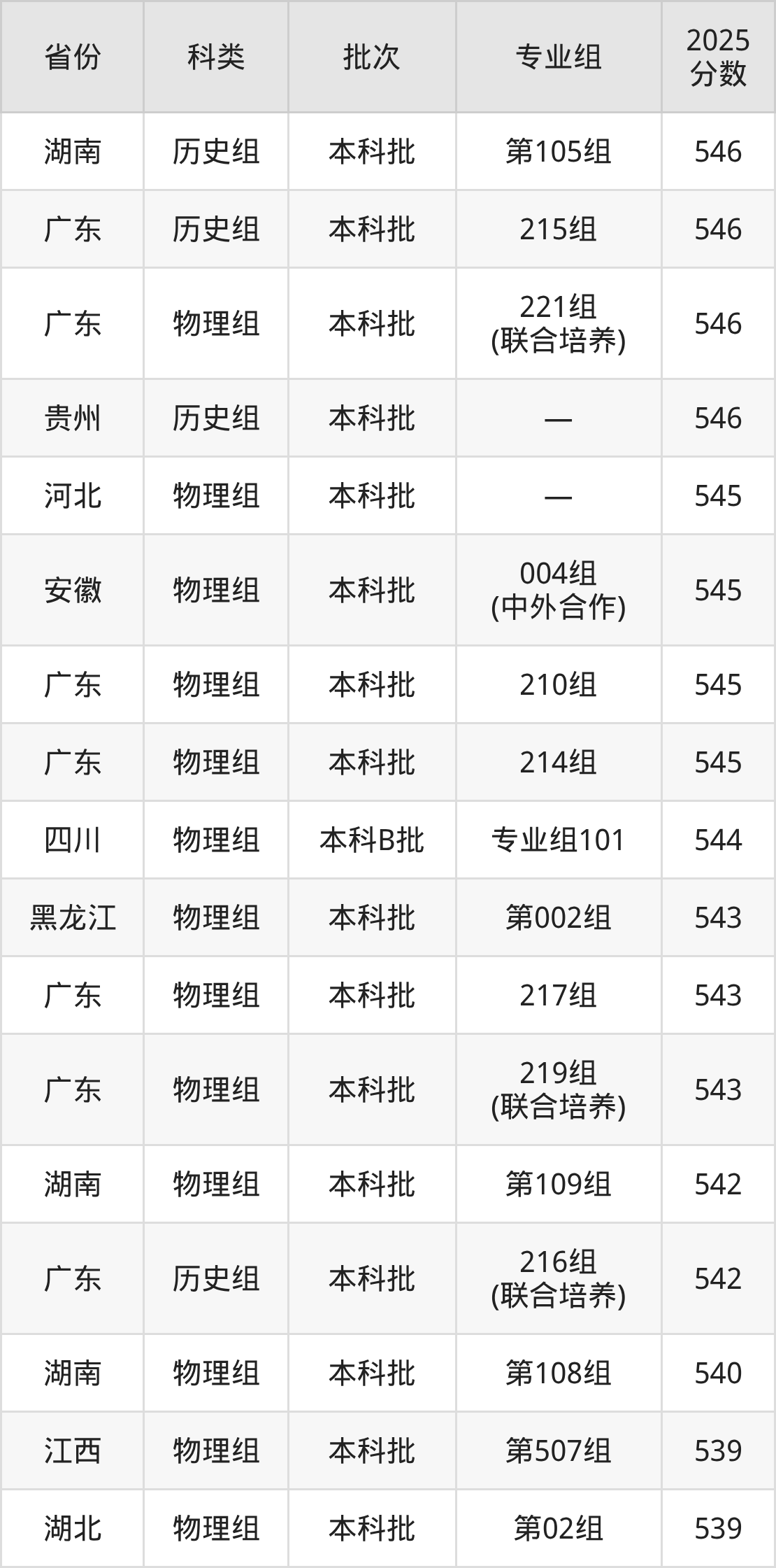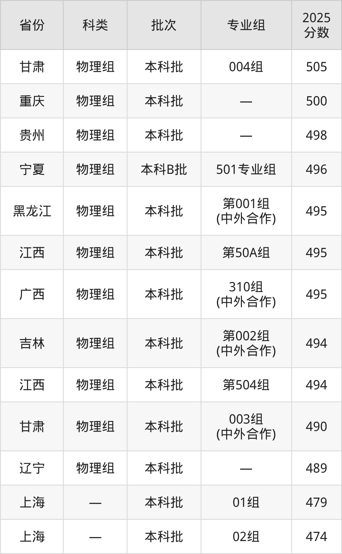 2025年华东交通大学在全国普通批次招生的录取分数范围位于474~618分之间,其中省内分数范围为494分~573分,历史组最低分专业组为“第103组”,考生528分即可报考,物理组最低分专业组为“第504组”,考生494分即可报考。
