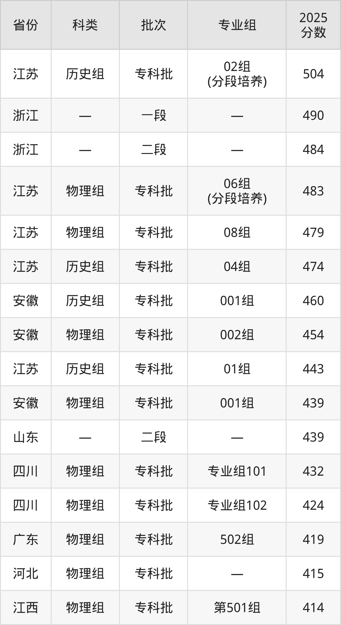 而浙江地区考生的分数门槛最高,2025年江苏医药职业学院在浙江招生最低分为490分,考生至少要超一段线0分才有可能被录取。