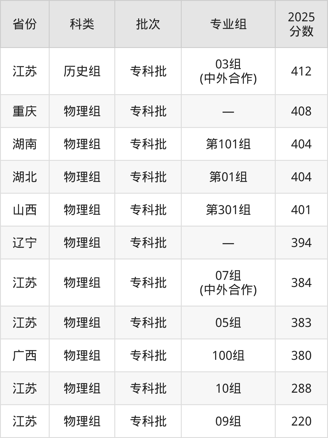 2023-2025年江苏高考数据显示,江苏医药职业学院在该省招生的录取最低分数分别为401分、367分、220分,结合近三年最低分来看,预计2026年江苏医药职业学院最低329分能上。
