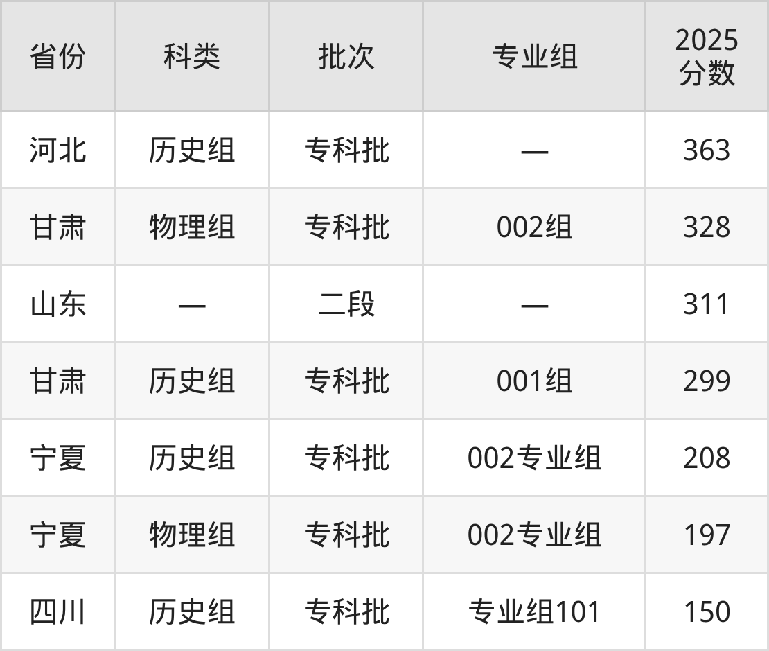 而河北地区历史组考生的分数门槛最高,2025年宁夏幼儿师范高等专科学校在河北招生最低分为363分,考生至少要超专科线163分才有可能被录取。