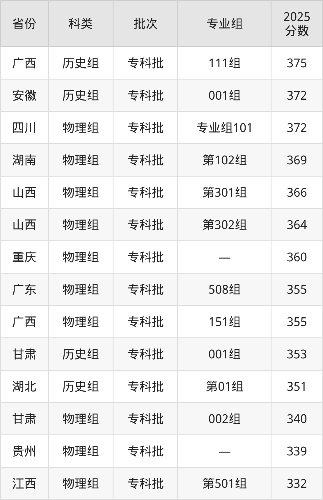 下面是南昌健康职业技术学院2025年在全国各省的录取分数线一览表,供参考: