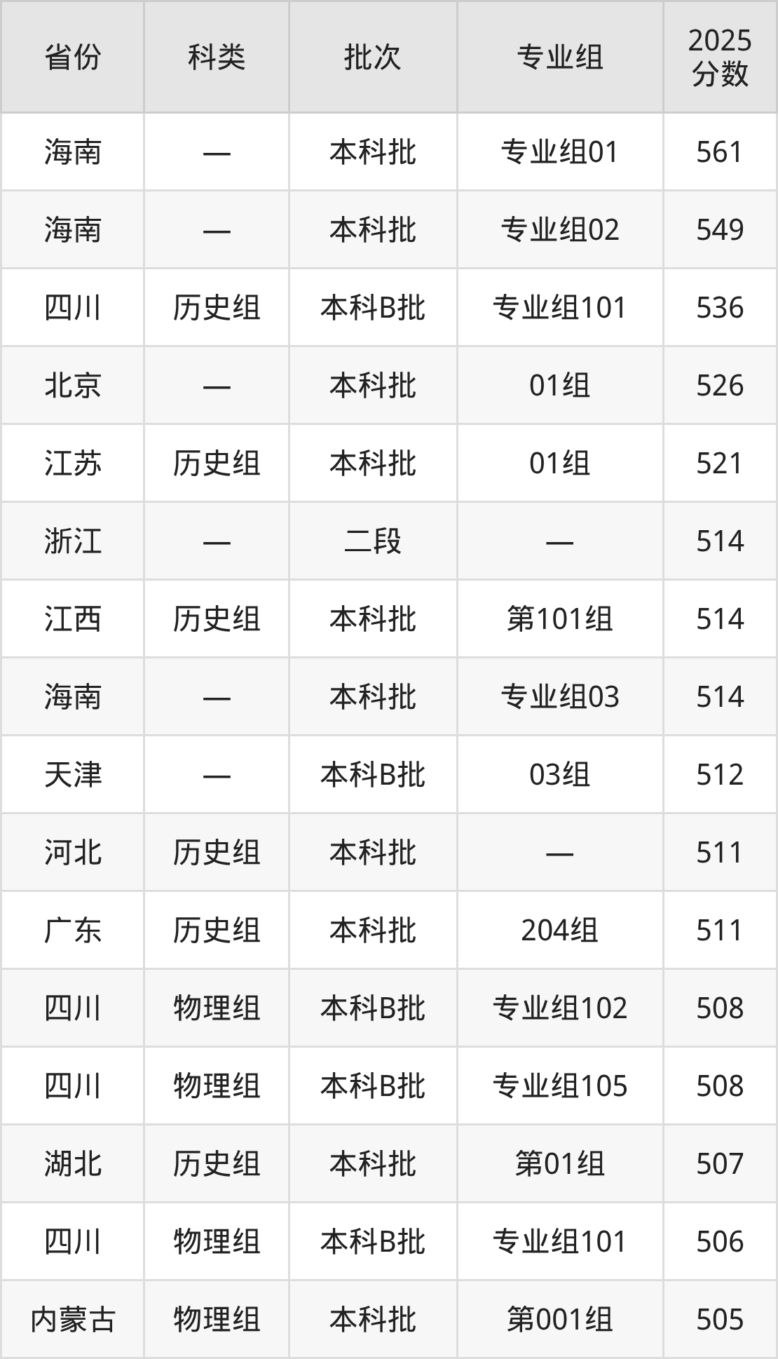 而海南地区考生的分数门槛最高,2025年石家庄铁道大学四方学院专业组01在海南招生最低分为561分,考生至少要超本科线81分才有可能被录取。