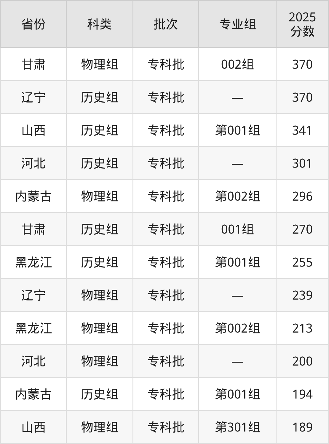 下面是石家庄工程职业学院2025年在全国各省的录取分数线一览表,供参考: