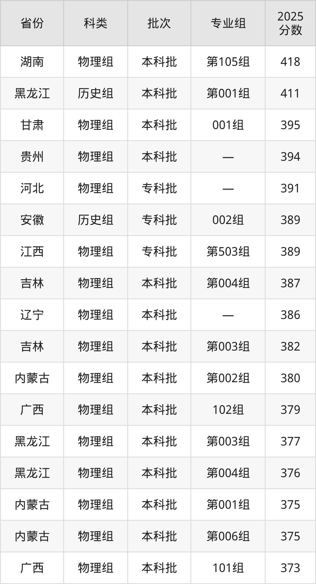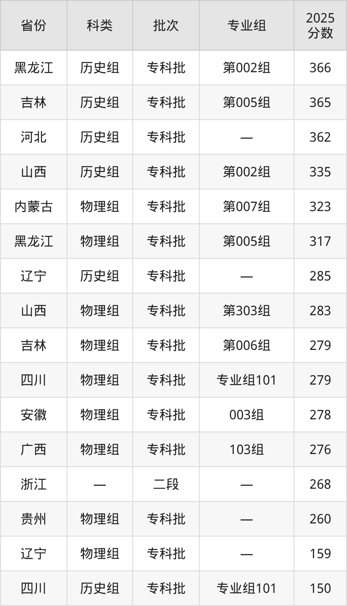 沈阳工学院在省外招生的最低分为150分,其中四川地区历史组考生上沈阳工学院的分数门槛最低,考生成绩达专科线即可报考。其次是贵州物理组考生,上沈阳工学院至少要超专科线80分(260分)。