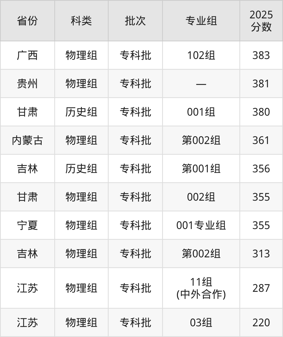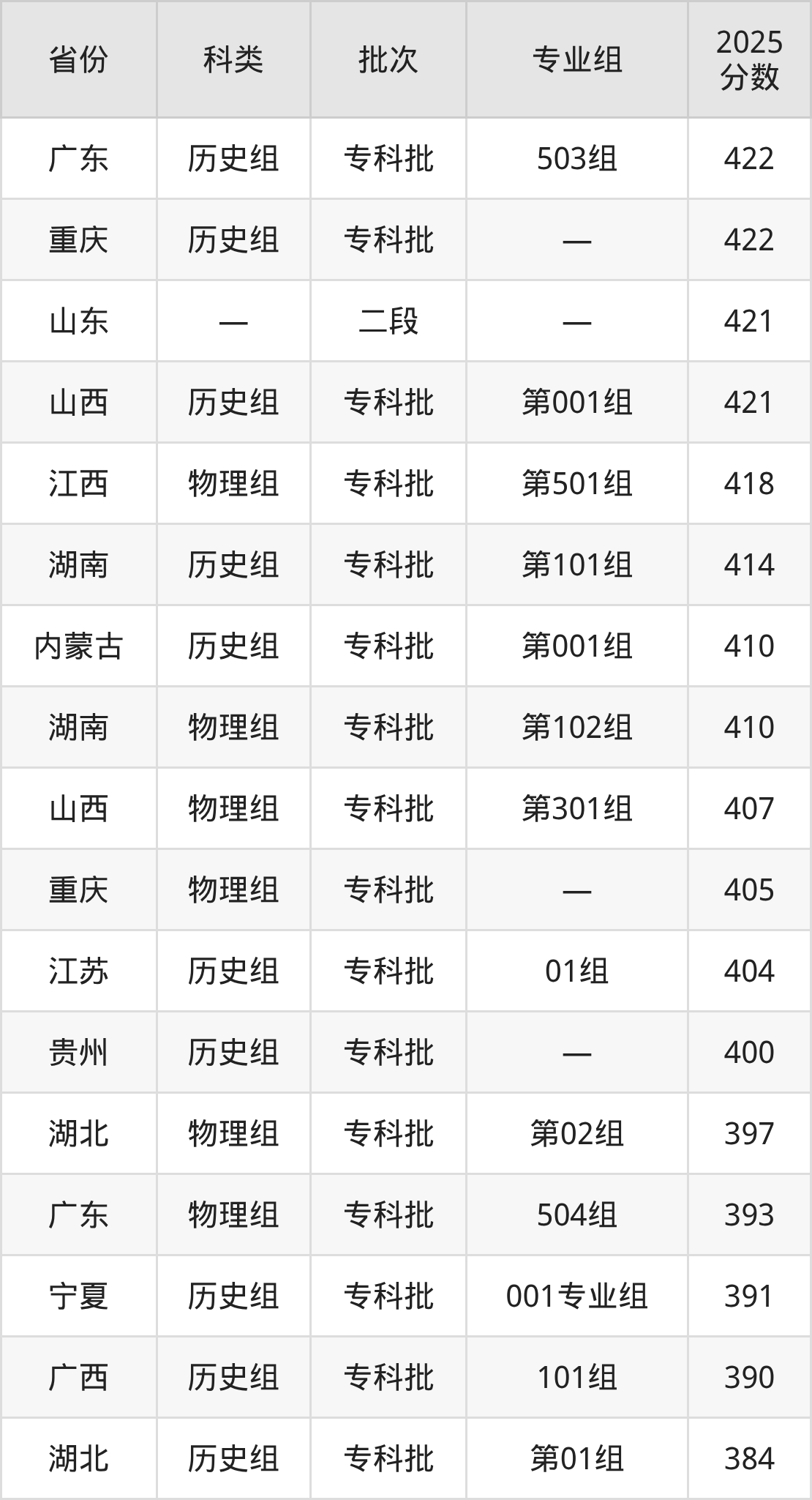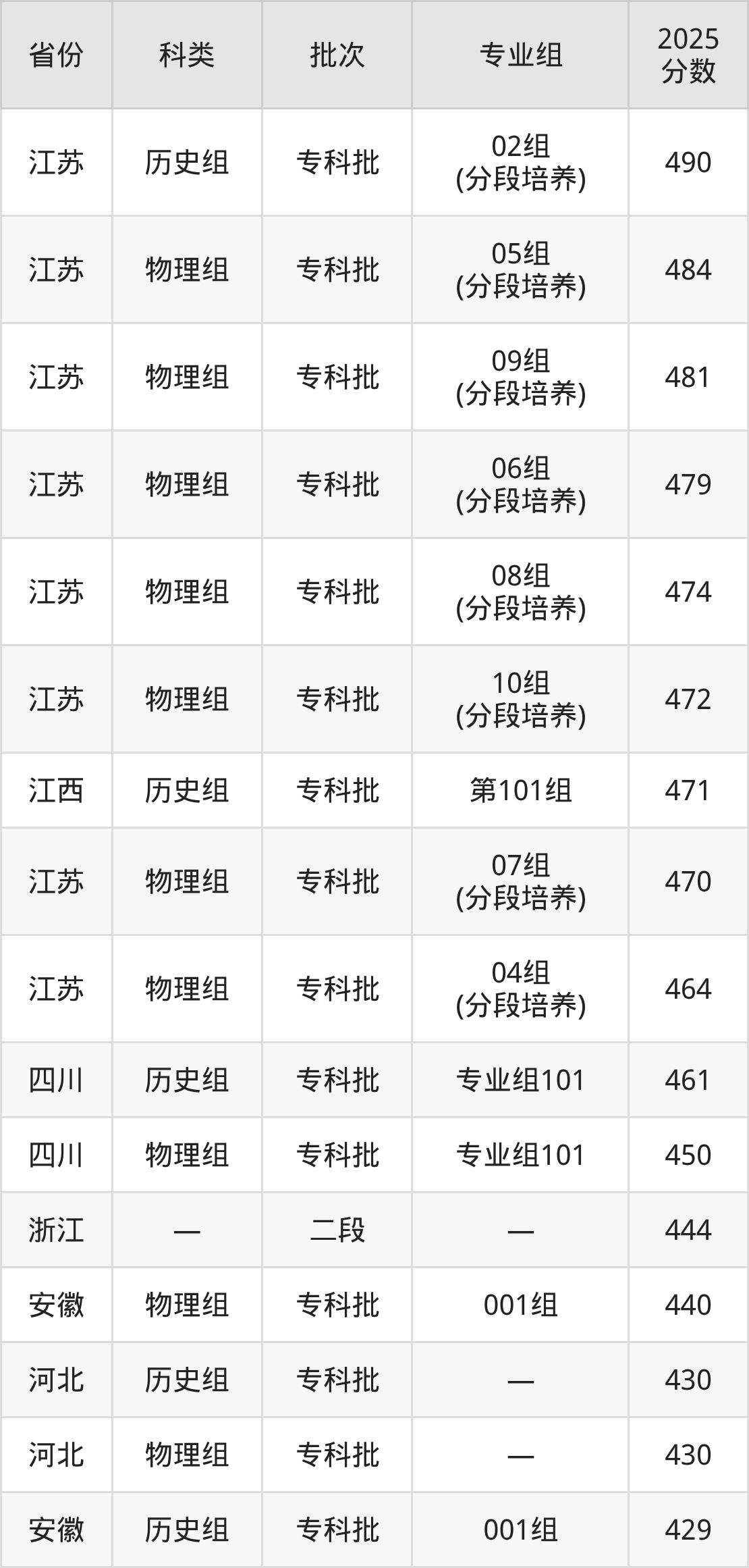 而江西地区历史组考生的分数门槛最高,2025年徐州工业职业技术学院第101组在江西招生最低分为471分,考生至少要超专科线181分才有可能被录取。