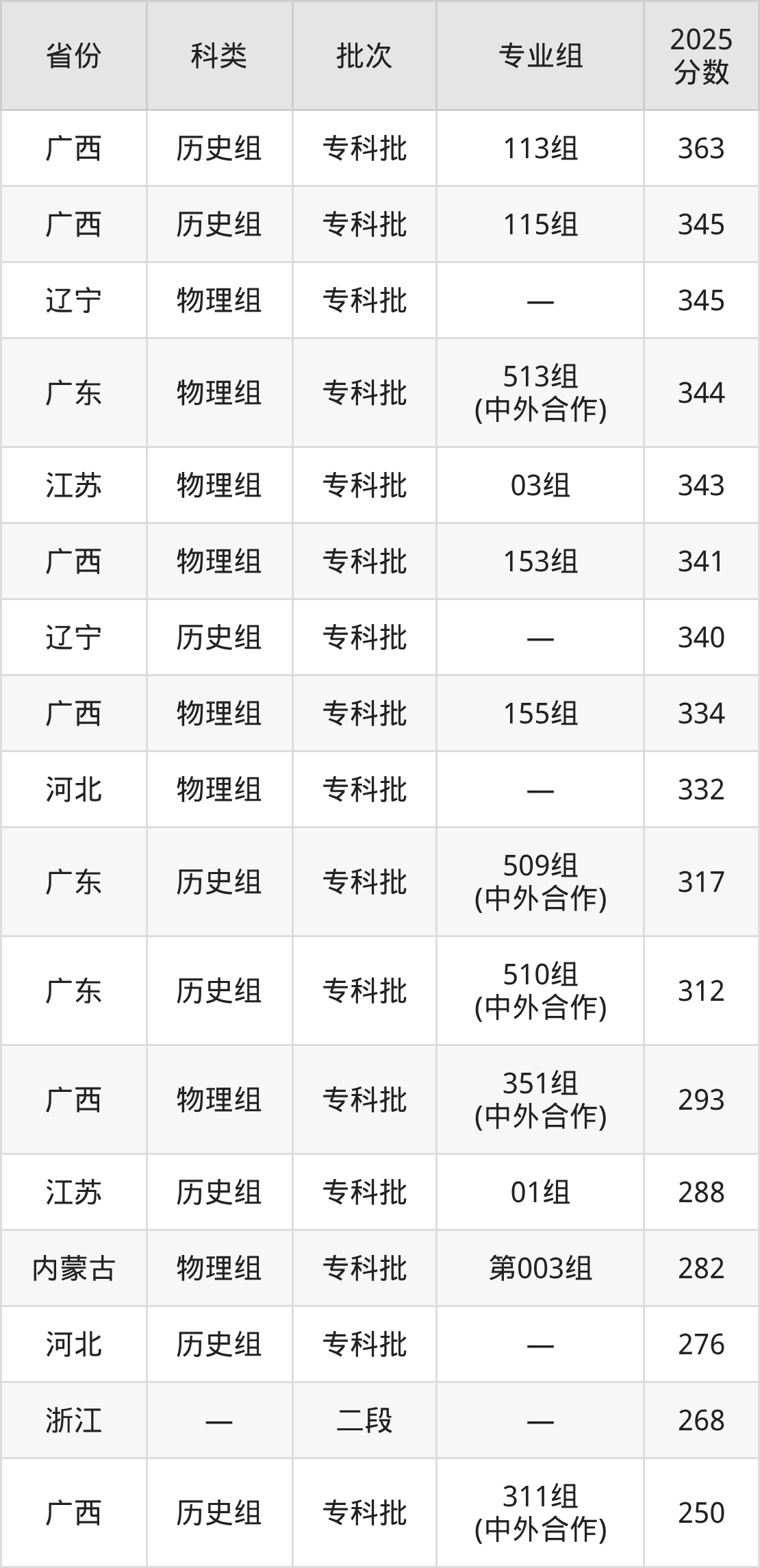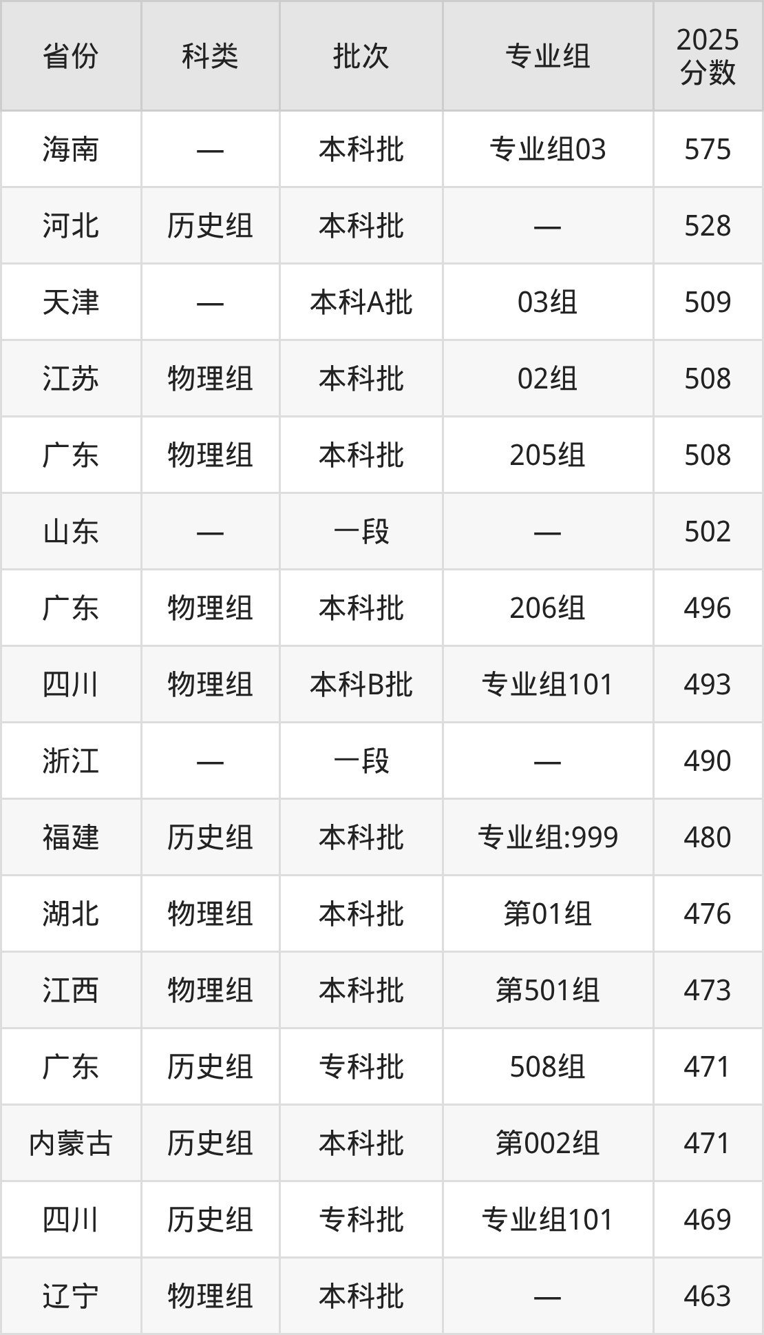 而海南地区考生的分数门槛最高,2025年桂林师范学院专业组03在海南招生最低分为575分,考生至少要超本科线95分才有可能被录取。