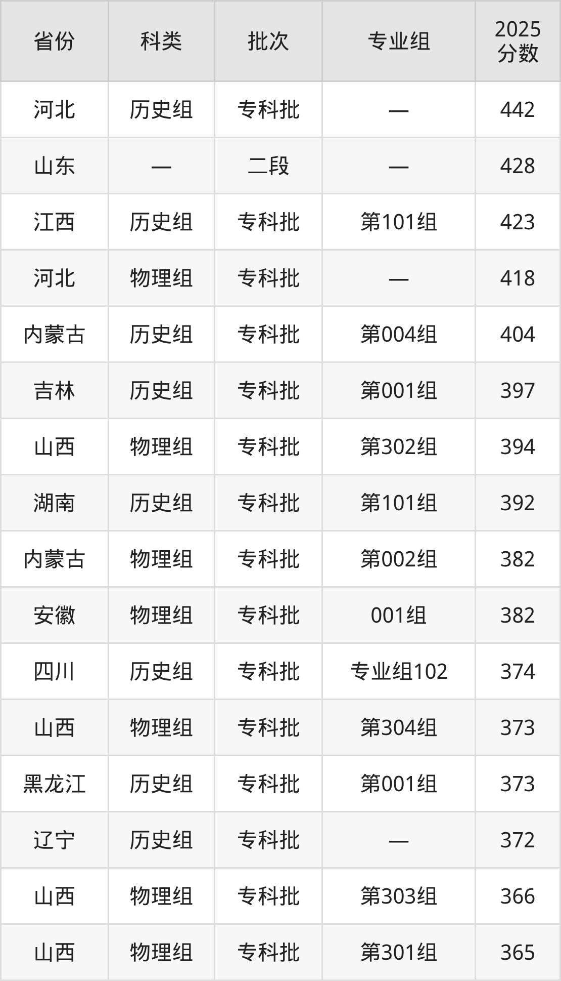 而河北地区历史组考生的分数门槛最高,2025年沈阳职业技术学院在河北招生最低分为442分,考生至少要超专科线242分才有可能被录取。