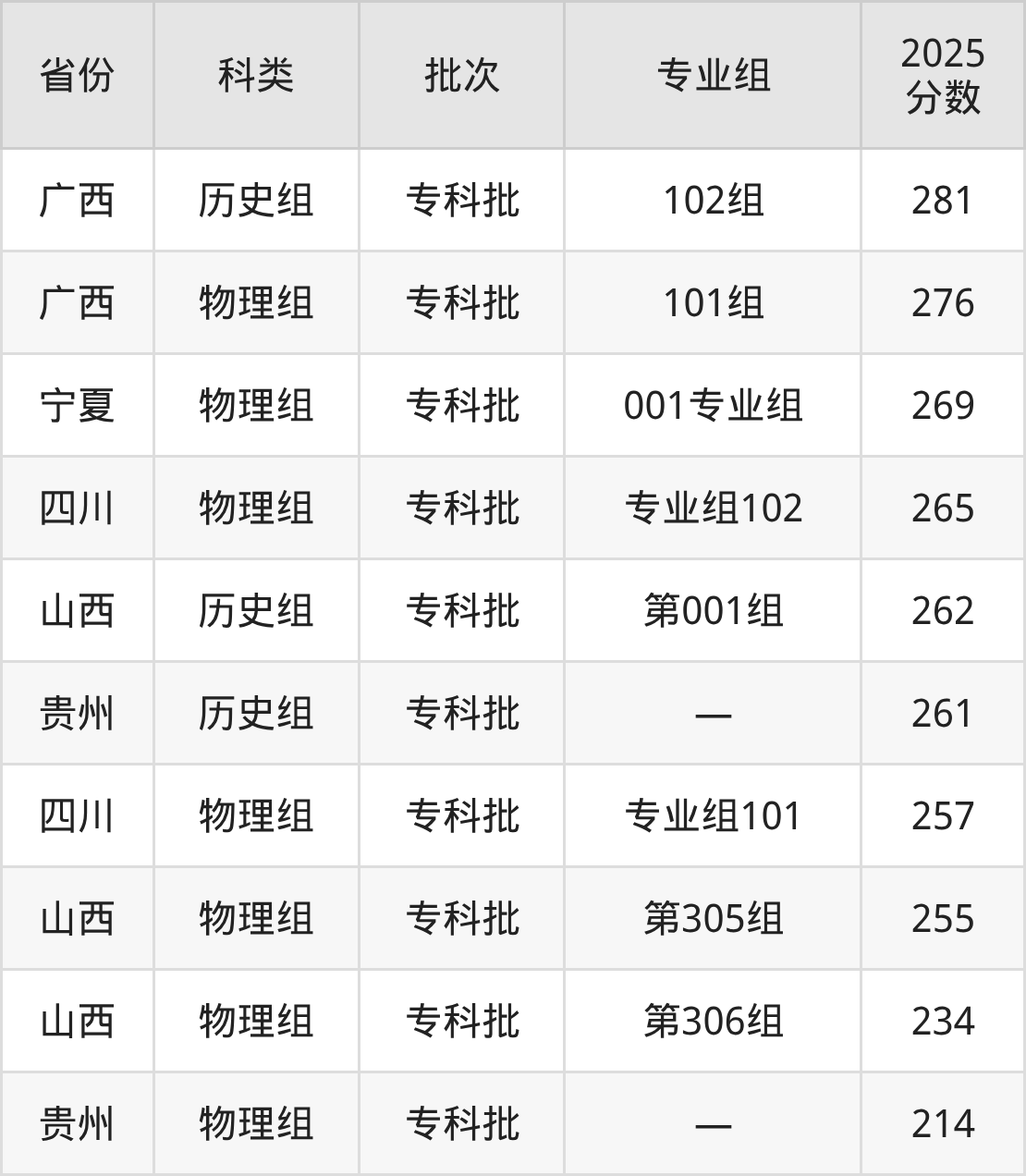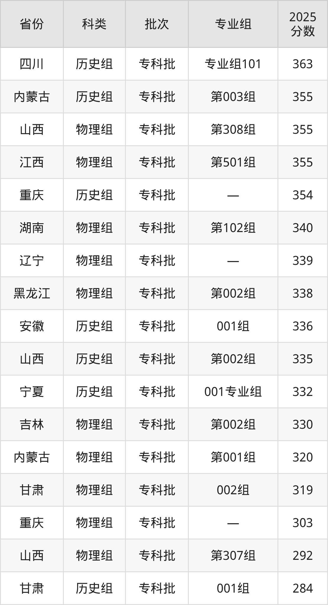 下面是沈阳职业技术学院2025年在全国各省的录取分数线一览表,供参考: