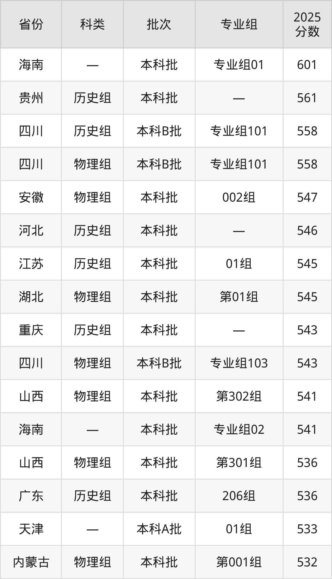 而海南地区考生的分数门槛最高,2025年兰州理工大学专业组01在海南招生最低分为601分,考生至少要超本科线121分才有可能被录取。