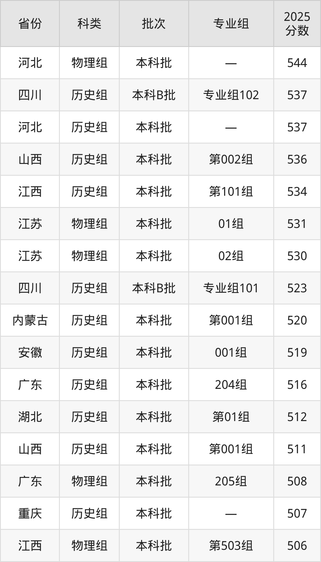 而河北地区物理组考生的分数门槛最高,2025年山东青年政治学院在河北招生最低分为544分,考生至少要超本科线85分才有可能被录取。