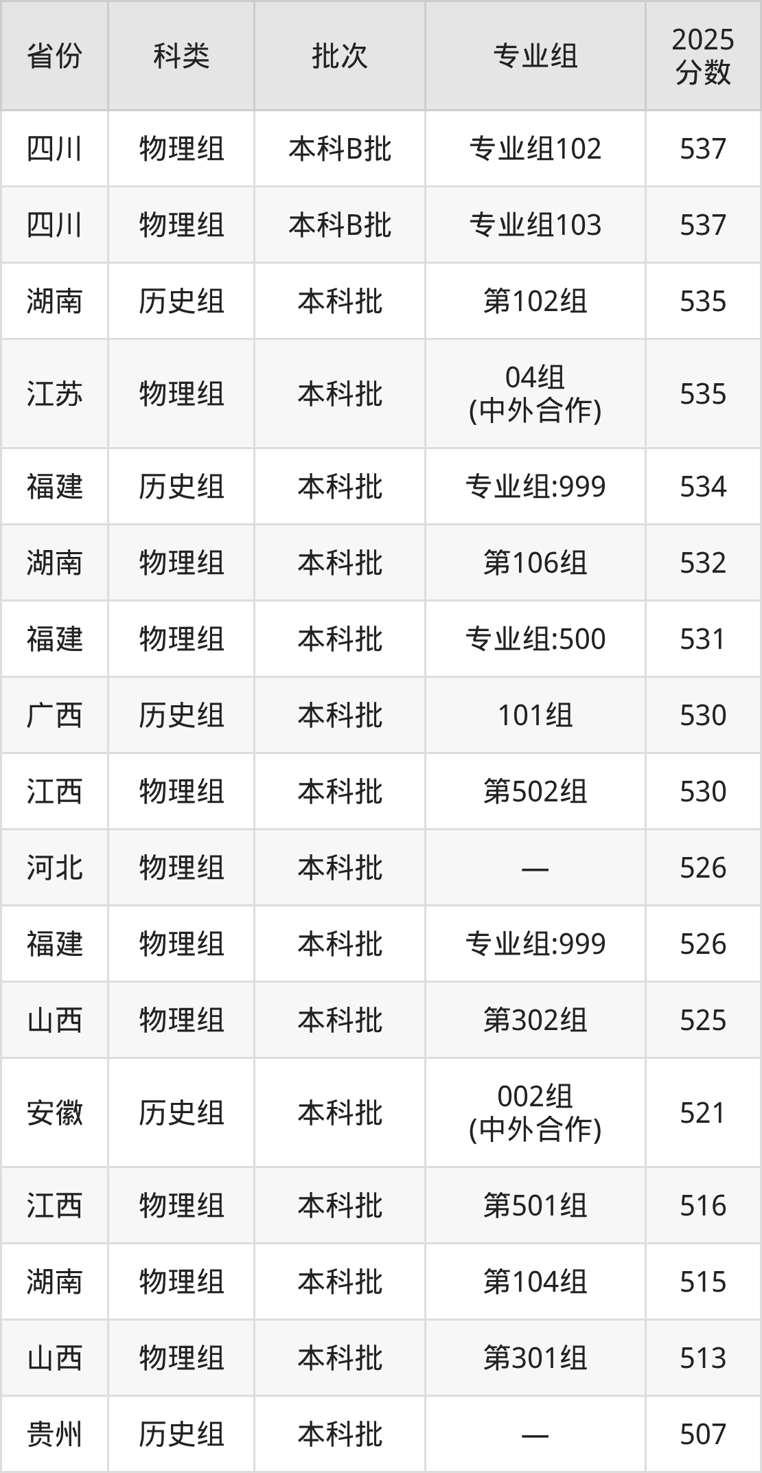 下面是浙江外国语学院2025年在全国各省的录取分数线一览表,供参考: