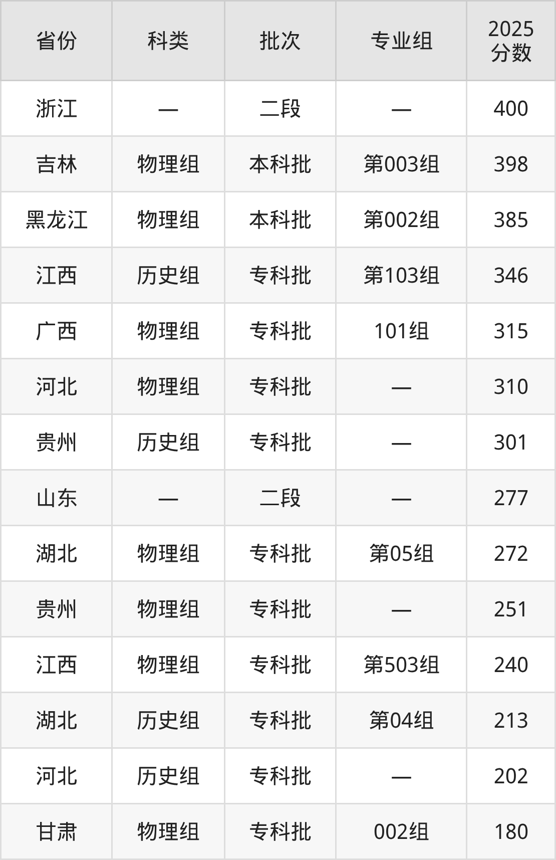 下面是景德镇艺术职业大学2025年在全国各省的录取分数线一览表,供参考: