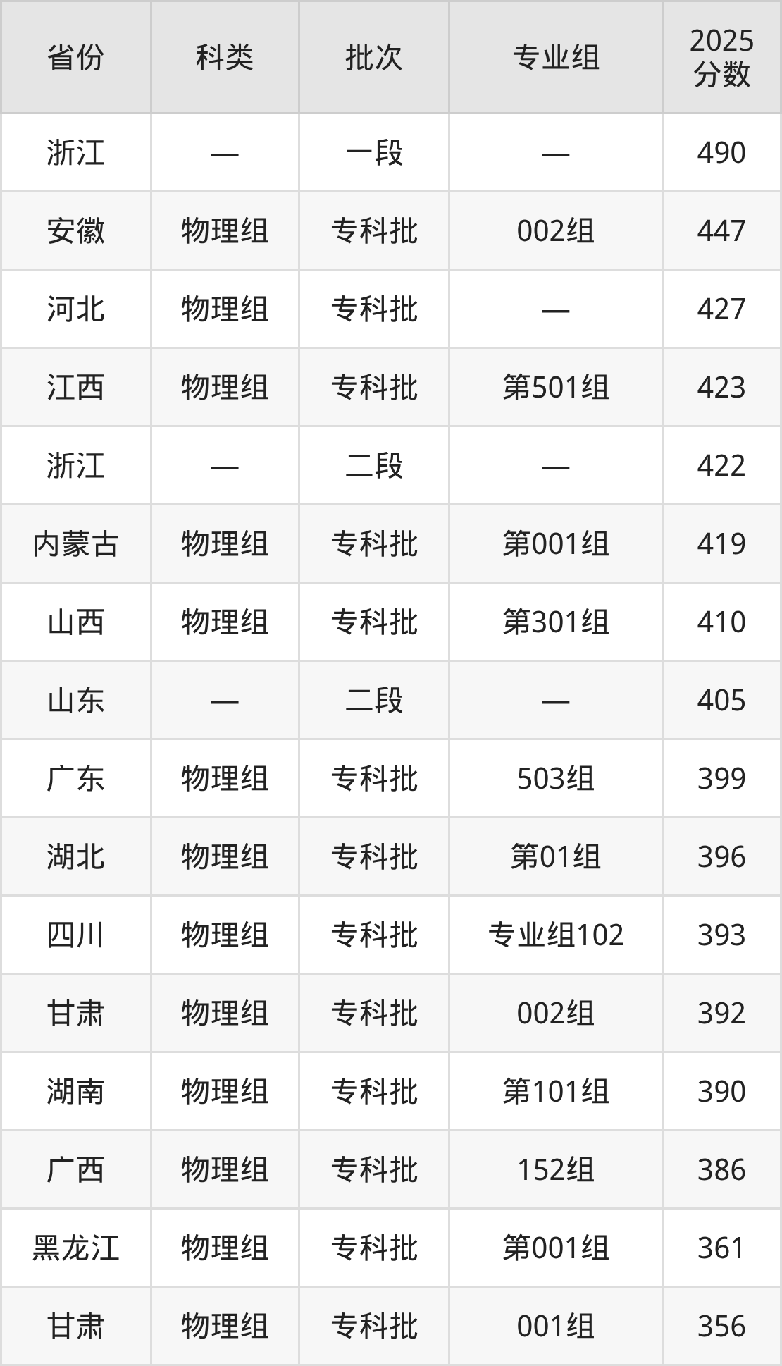 而浙江地区考生的分数门槛最高,2025年漯河医学高等专科学校在浙江招生最低分为490分,考生至少要超一段线0分才有可能被录取。