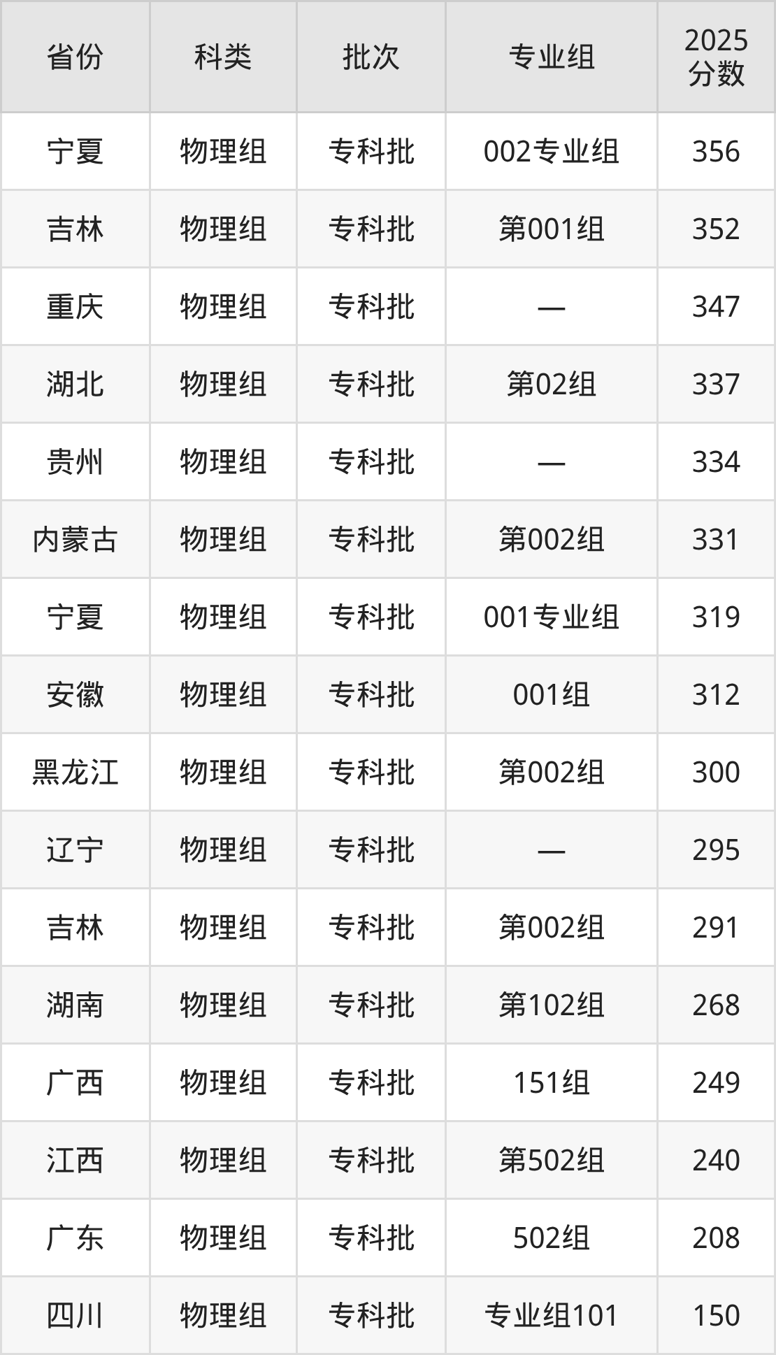 下面是漯河医学高等专科学校2025年在全国各省的录取分数线一览表,供参考: