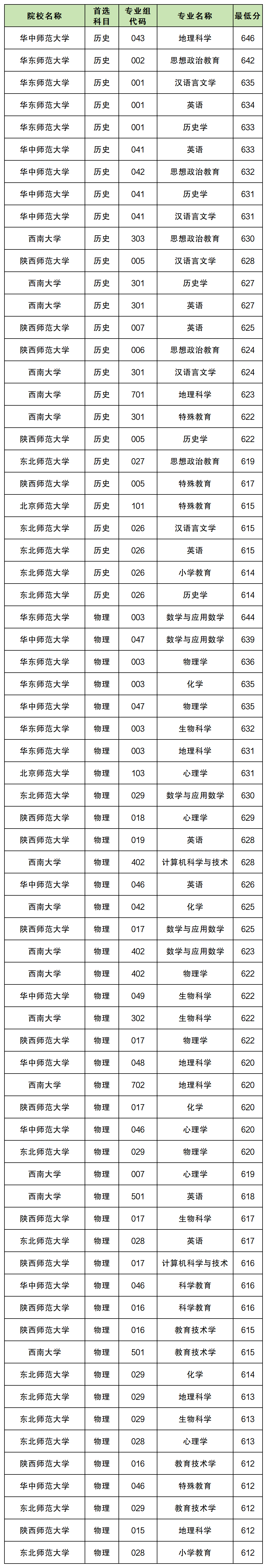 物理类:最低612分,对应东北师范大学小学教育专业。