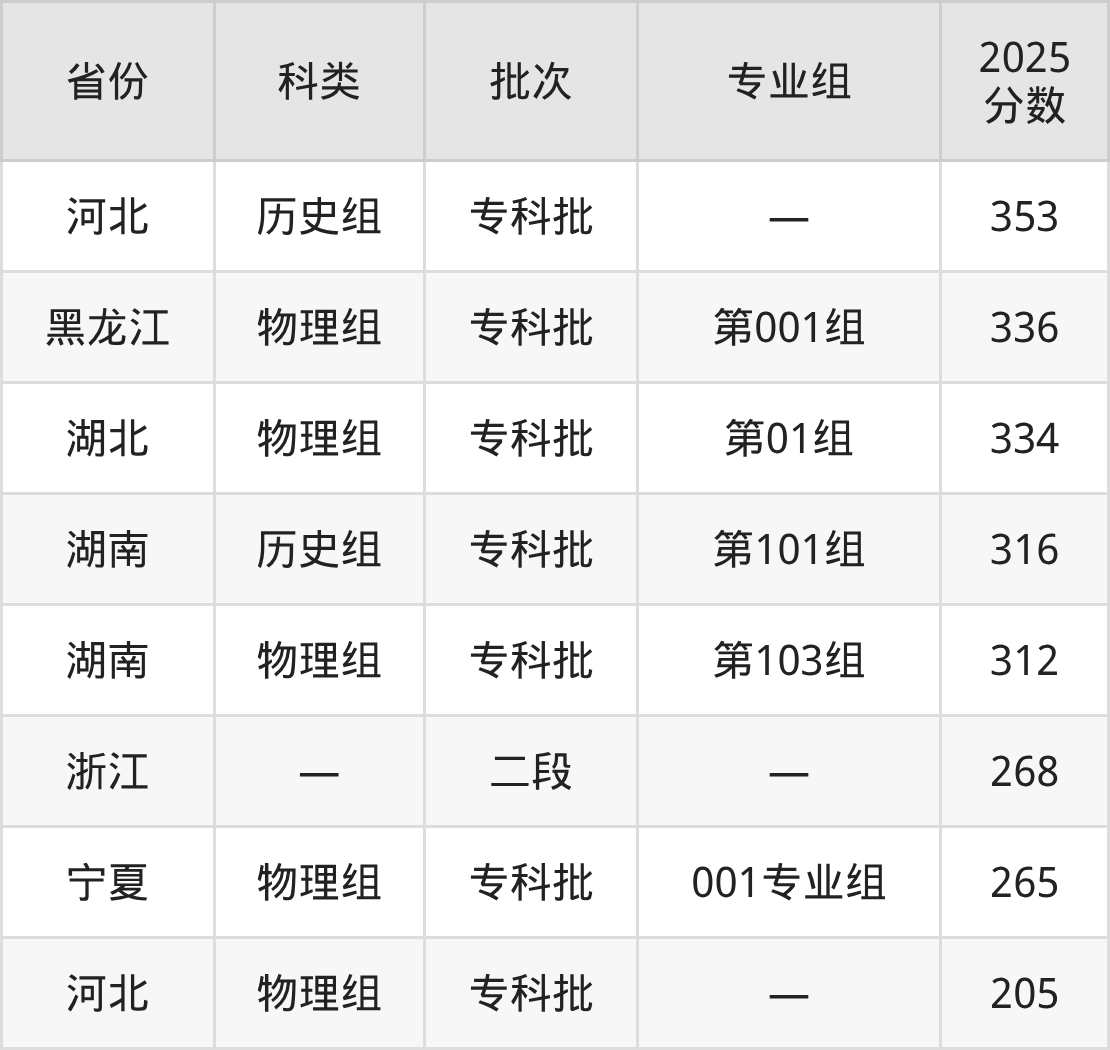 下面是长沙轨道交通职业学院2025年在全国各省的录取分数线一览表,供参考: