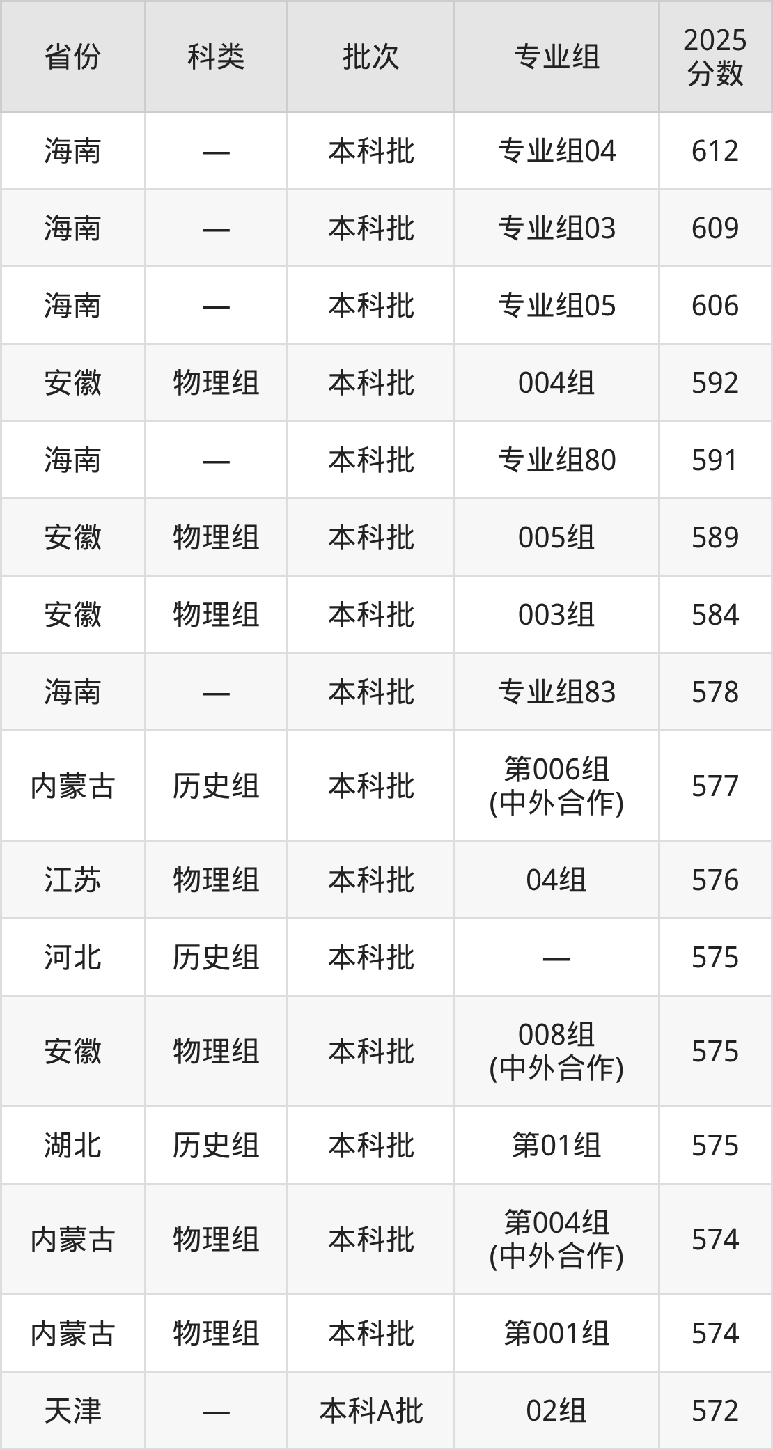 而海南地区考生的分数门槛最高,2025年天津科技大学专业组04在海南招生最低分为612分,考生至少要超本科线132分才有可能被录取。