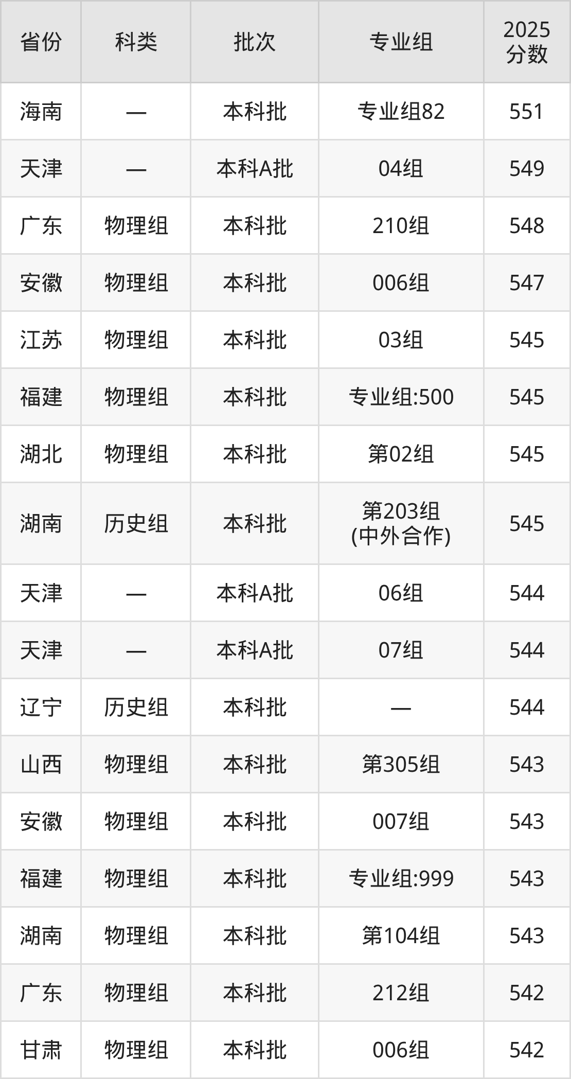 下面是天津科技大学2025年在全国各省的录取分数线一览表,供参考: