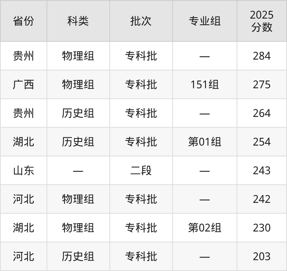 而贵州地区物理组考生的分数门槛最高,2025年云南外事外语职业学院在贵州招生最低分为284分,考生至少要超专科线104分才有可能被录取。