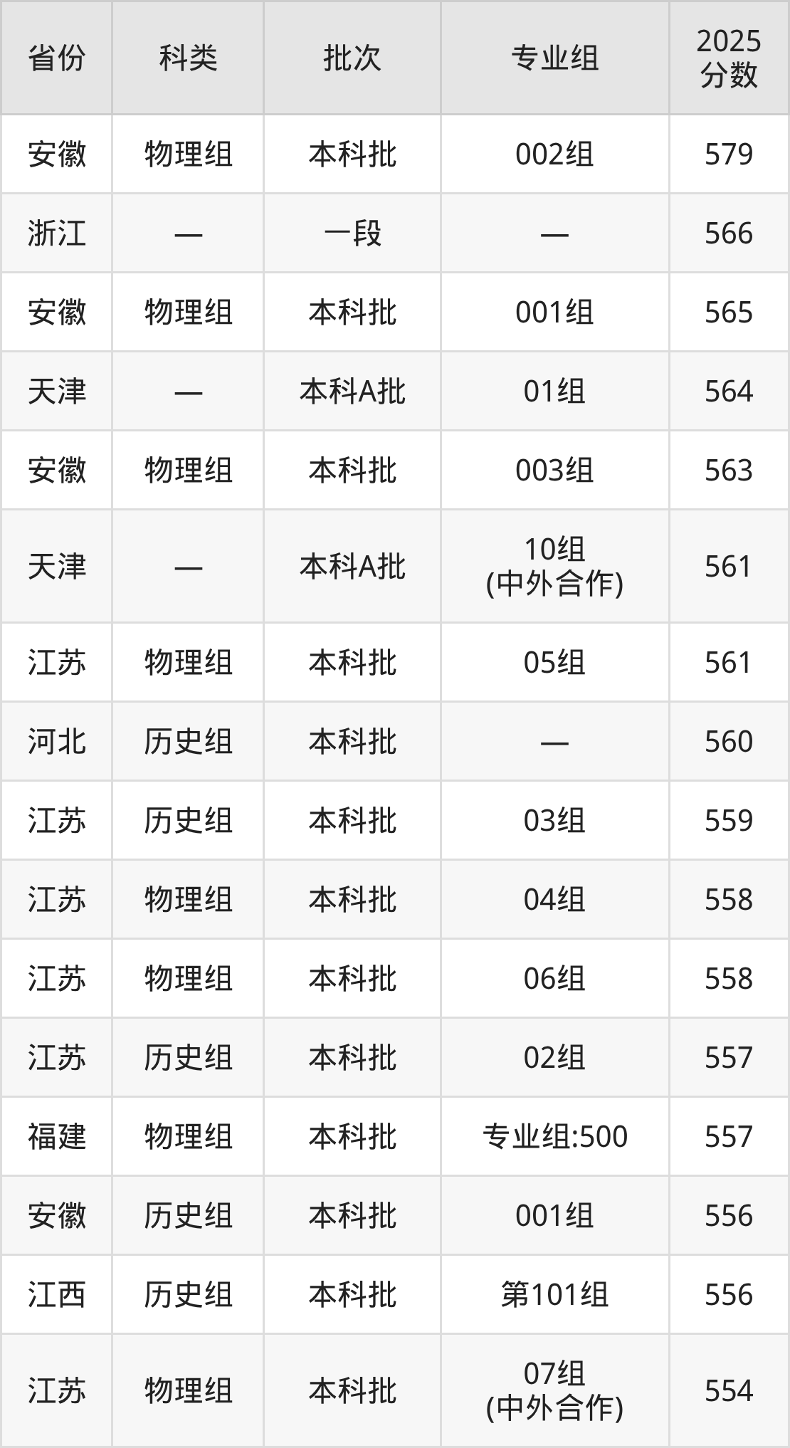 而安徽地区物理组考生的分数门槛最高,2025年浙江科技大学002组在安徽招生最低分为579分,考生至少要超本科线118分才有可能被录取。