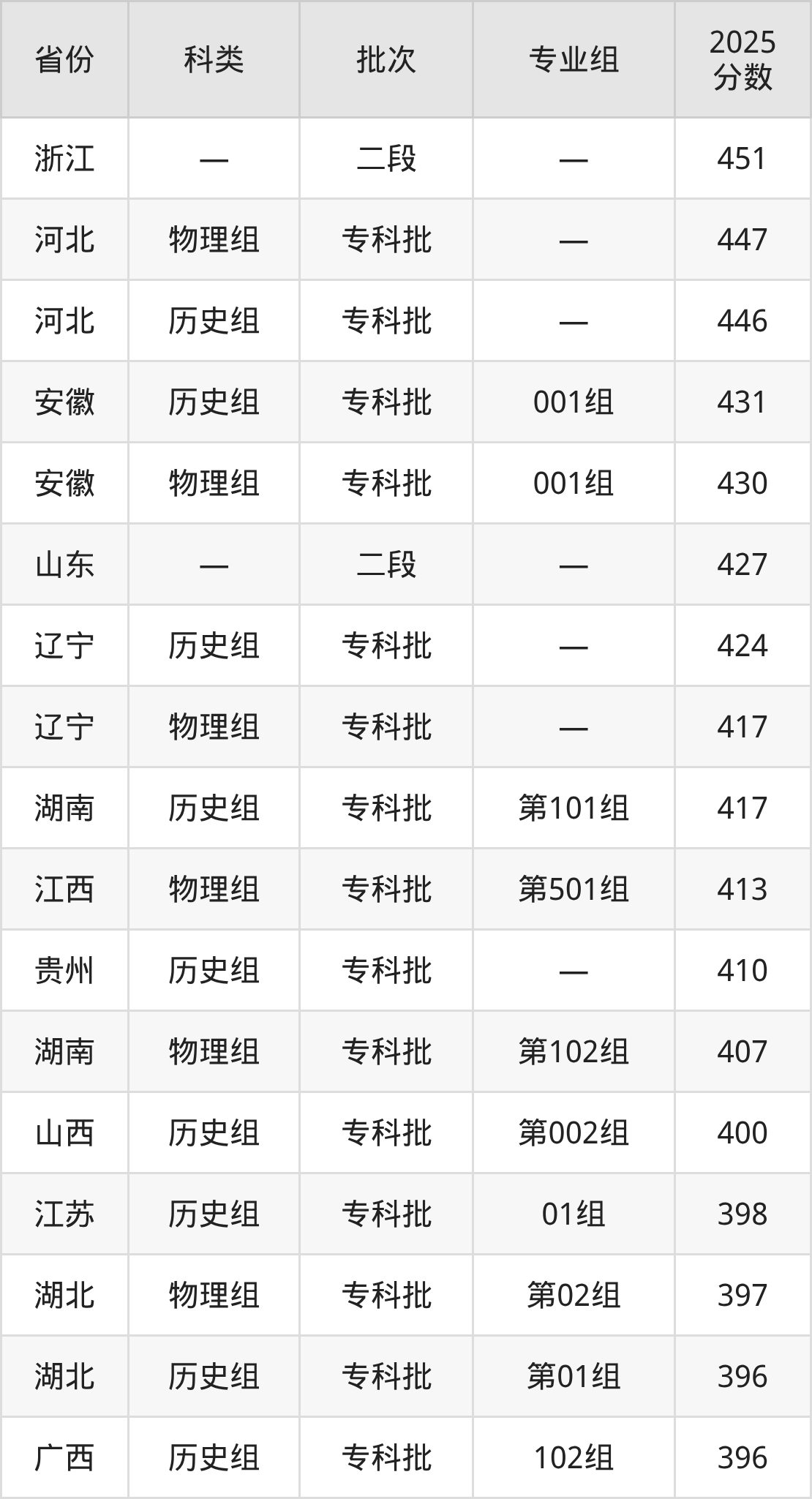 而浙江地区考生的分数门槛最高,2025年江苏航运职业技术学院在浙江招生最低分为490分,考生至少要超一段线0分才有可能被录取。