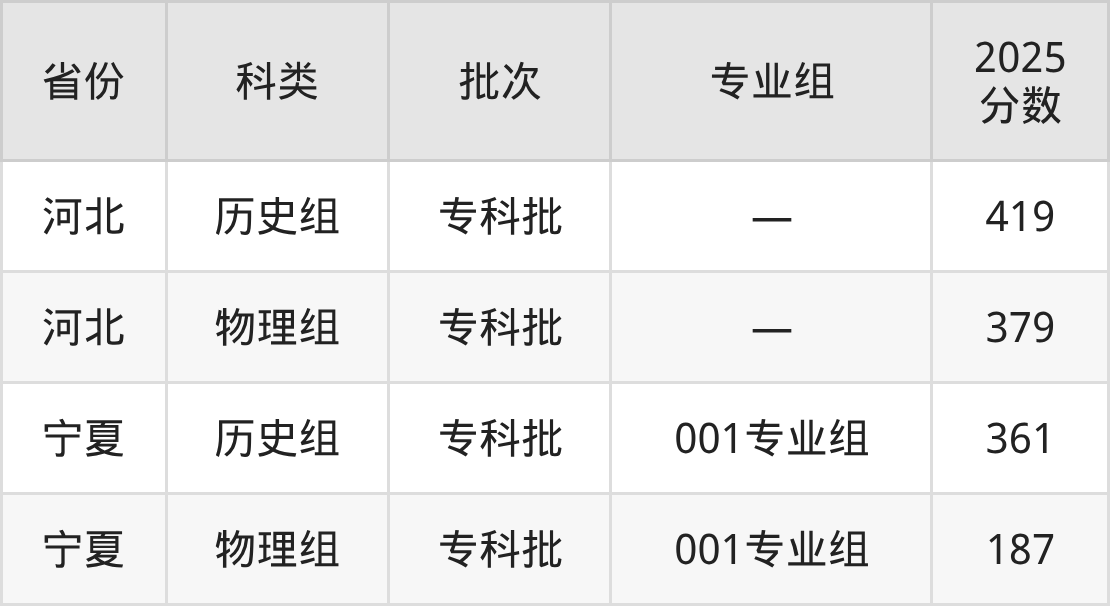 下面是宁夏卫生健康职业技术学院2025年在全国各省的录取分数线一览表,供参考: