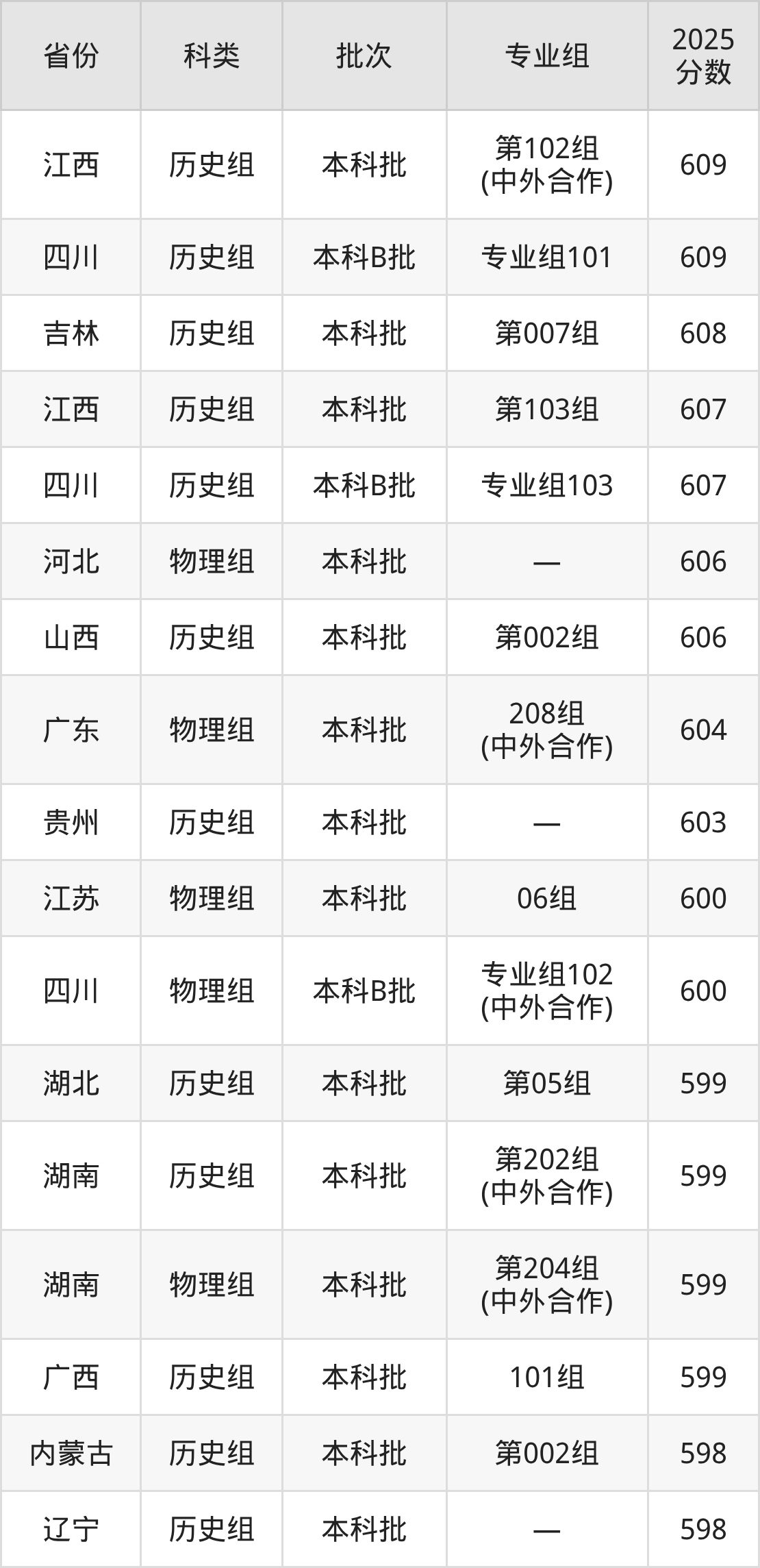 西南政法大学2026年录取分数需在高招结束官方数据公布后更新,2026届有意向报考该校的同学,可以在填报志愿时参考西南政法大学2025年录取分数线: