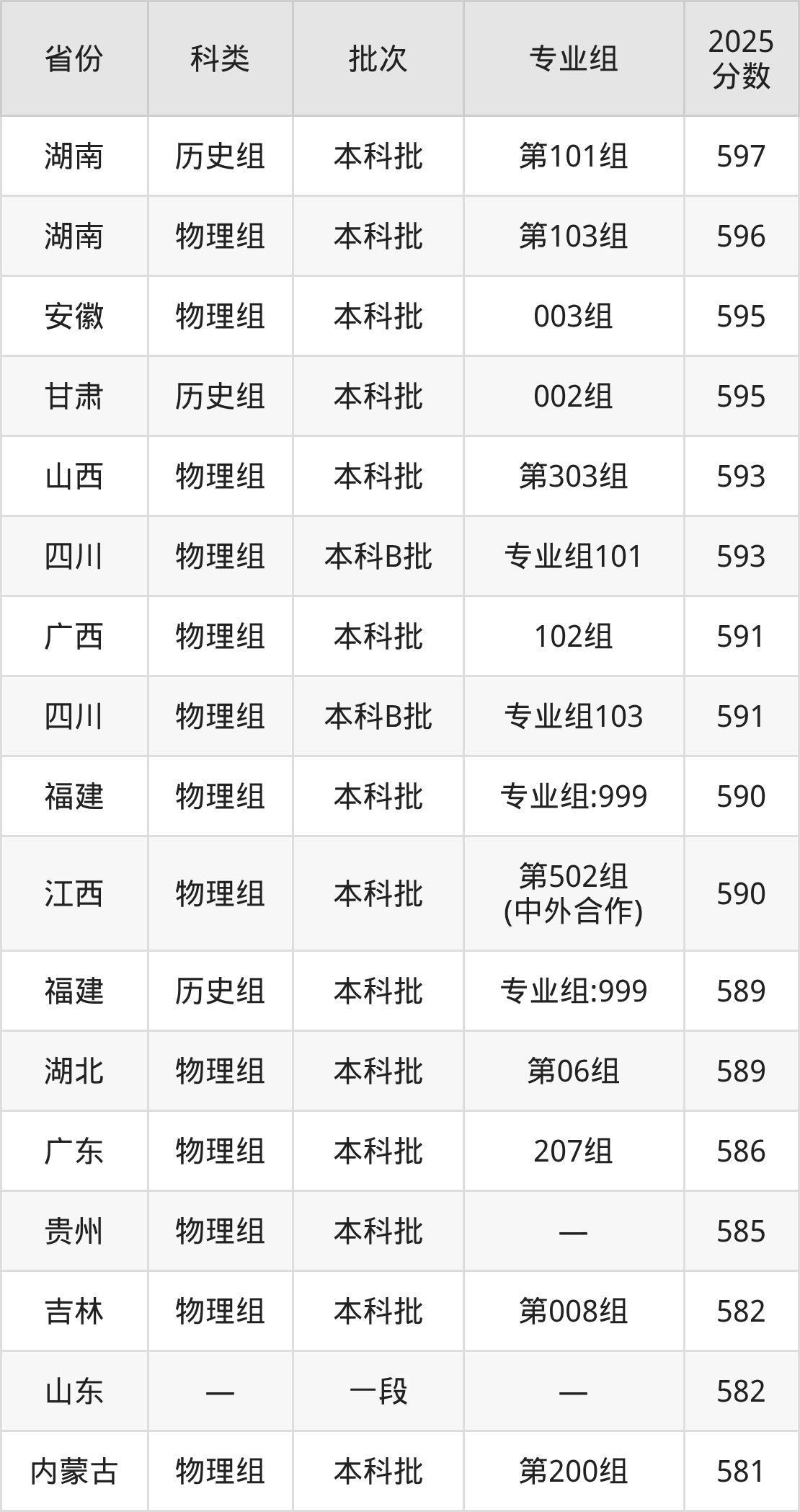 下面是西南政法大学2025年在全国各省的录取分数线一览表,供参考: