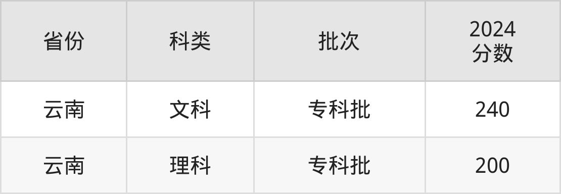 怒江职业技术学院在省内招生最低录取分数线为200分,不同地区、不同科类的考生最低分有差异。