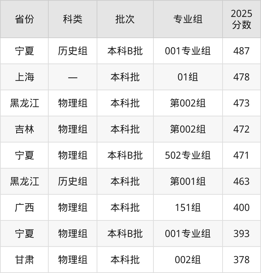 安徽财经大学在省外招生的最低分为378分,其中甘肃地区物理组考生上安徽财经大学的分数门槛最低,考生成绩超本科线4分(378分)可上。