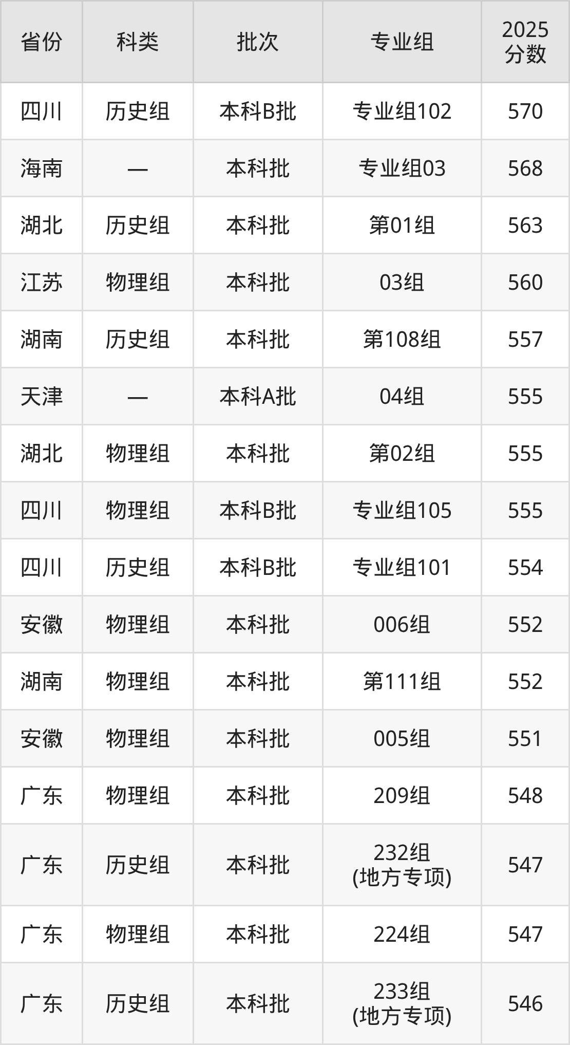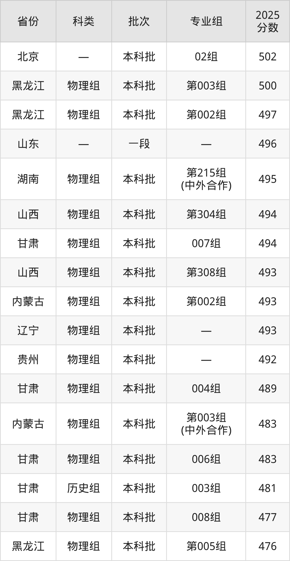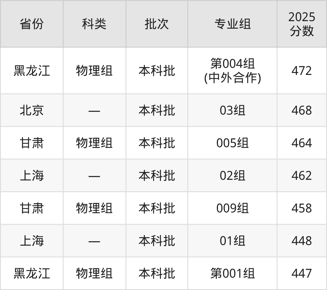 2025年广东海洋大学在全国普通批次招生的录取分数范围位于447~570分之间,其中省内分数范围为507分~548分,历史组最低分专业组为“230组”,考生536分即可报考,物理组最低分专业组为“202组”,考生507分即可报考。