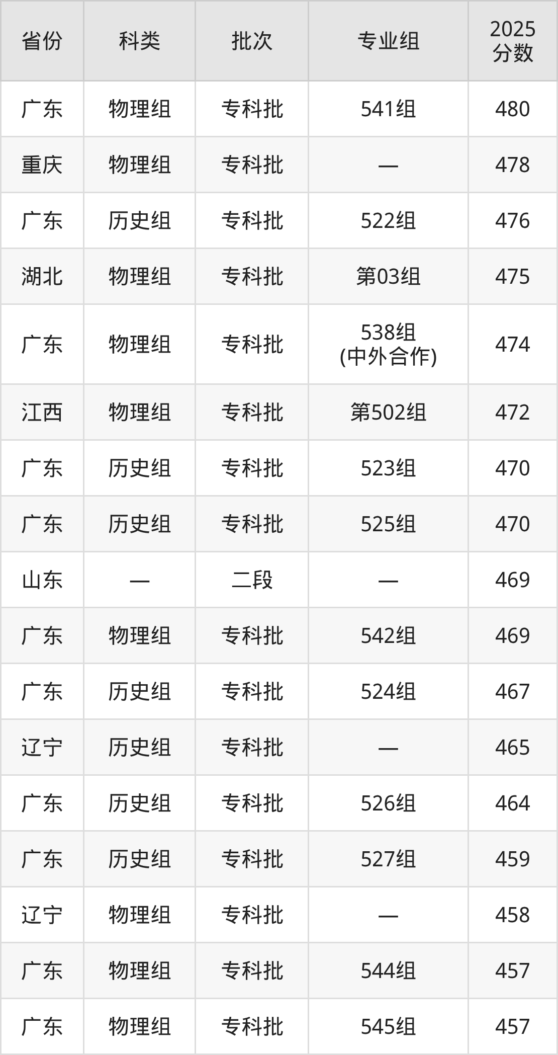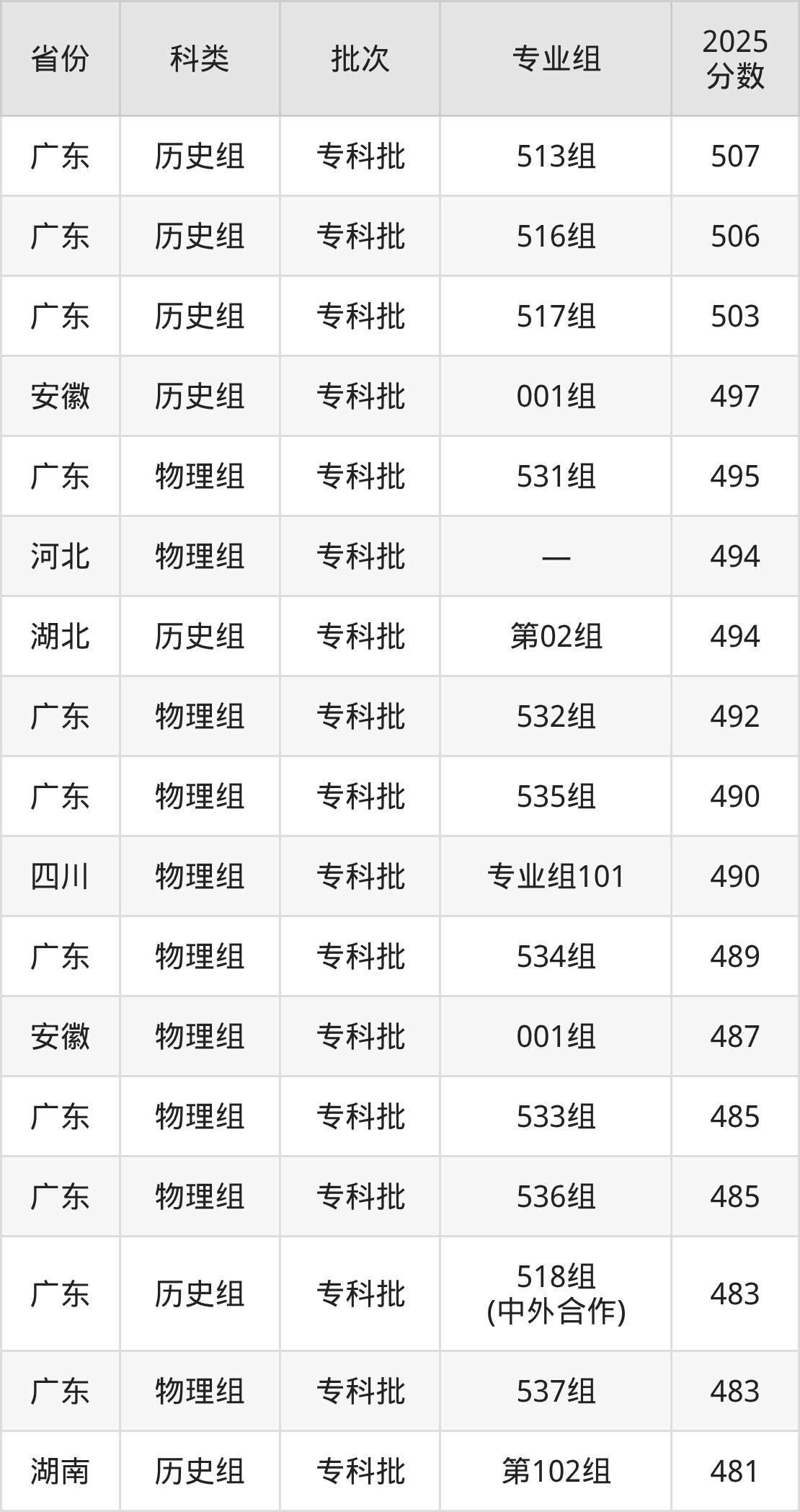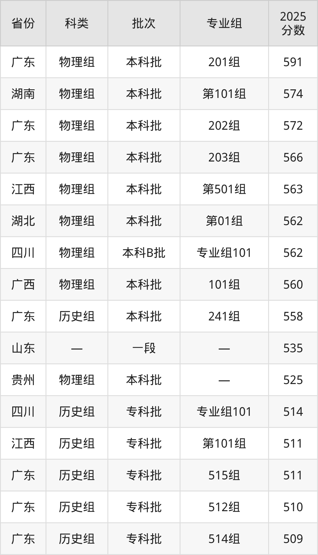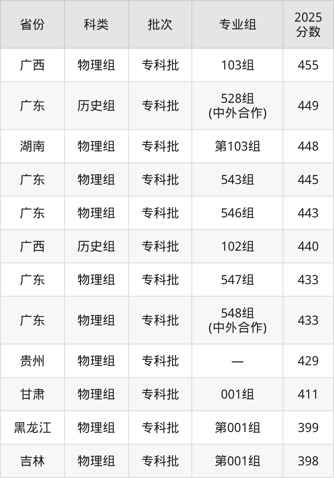 而湖南地区物理组考生的分数门槛最高,2025年深圳职业技术大学第101组在湖南招生最低分为574分,考生至少要超本科线169分才有可能被录取。
