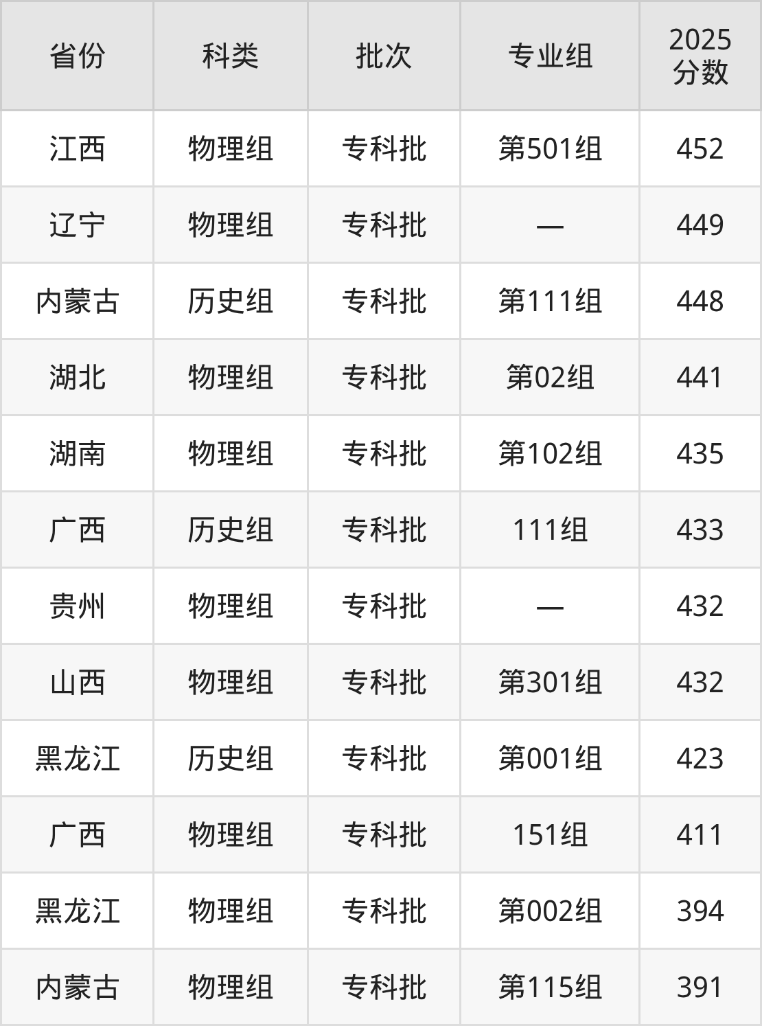 下面是武汉电力职业技术学院2025年在全国各省的录取分数线一览表,供参考: