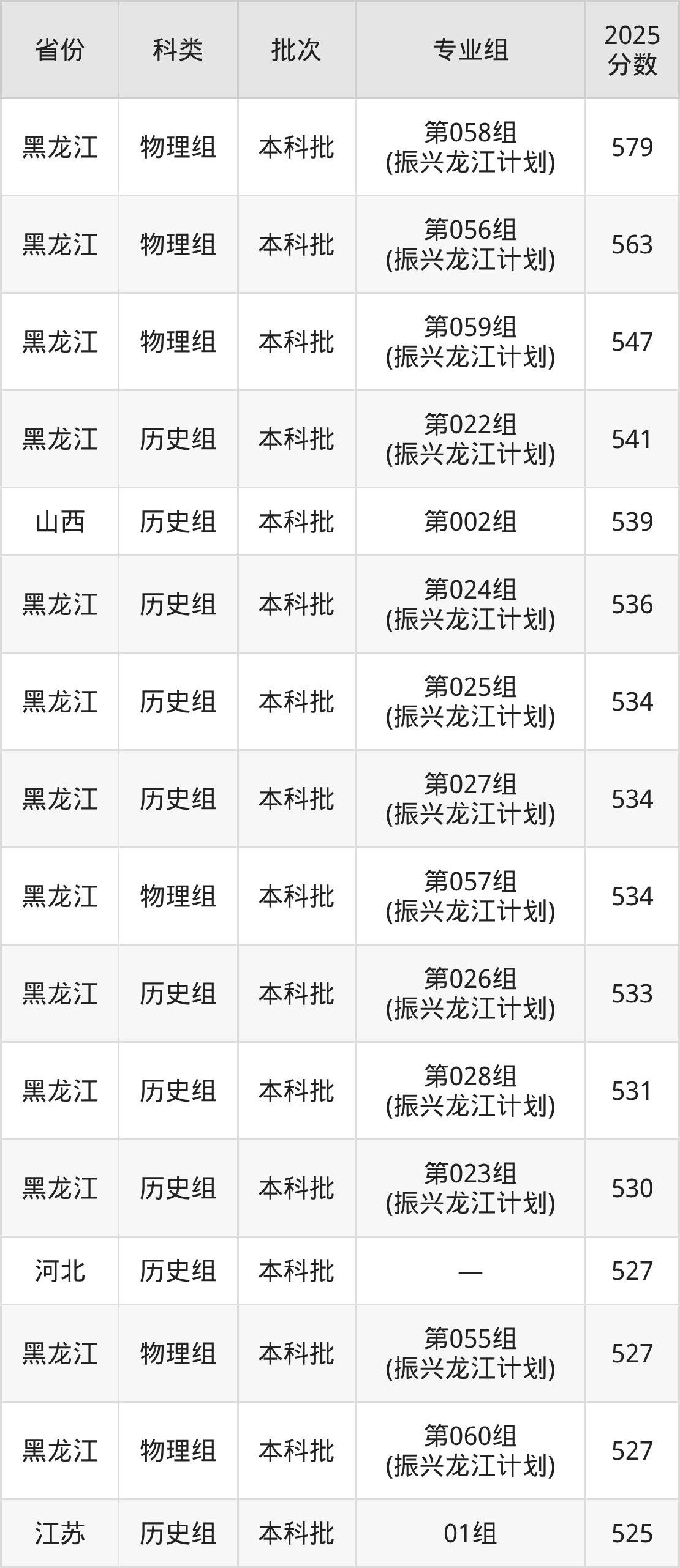 而山西地区历史组考生的分数门槛最高,2025年牡丹江师范学院第002组在山西招生最低分为539分,考生至少要超本科线96分才有可能被录取。