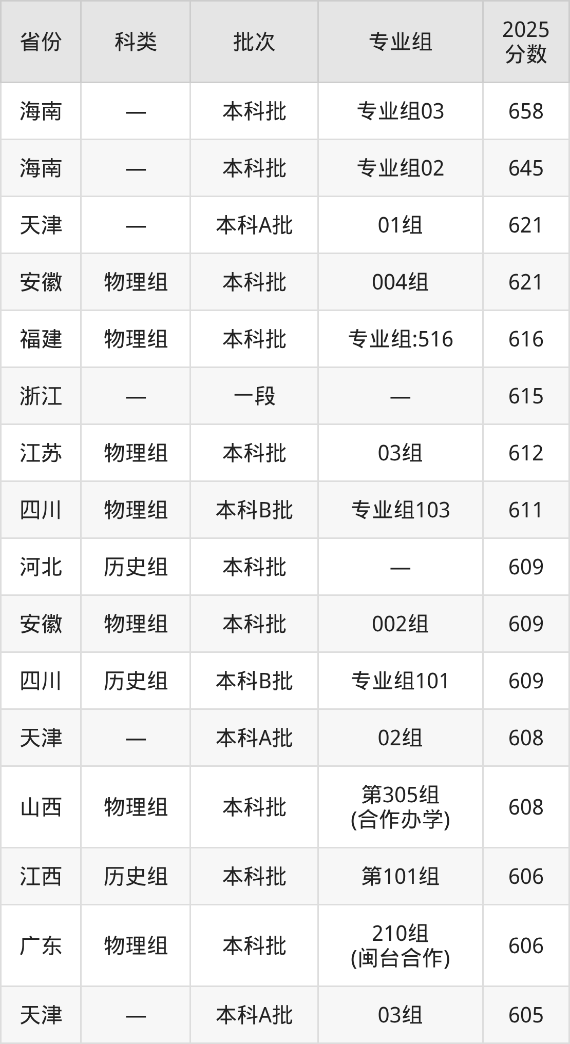 而海南地区考生的分数门槛最高,2025年福州大学专业组03在海南招生最低分为658分,考生至少要超本科线178分才有可能被录取。