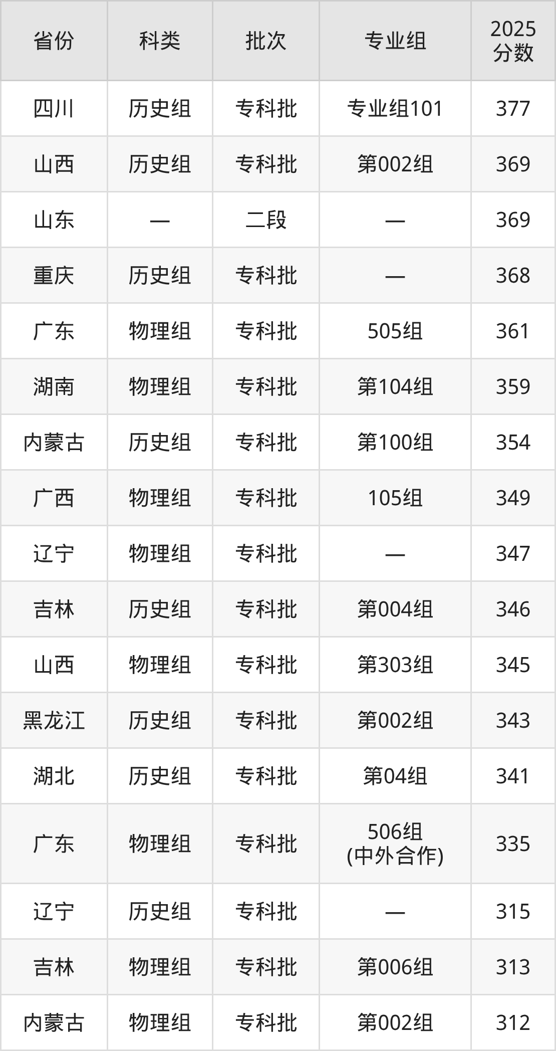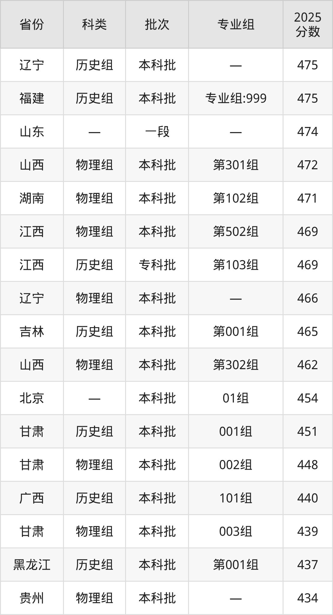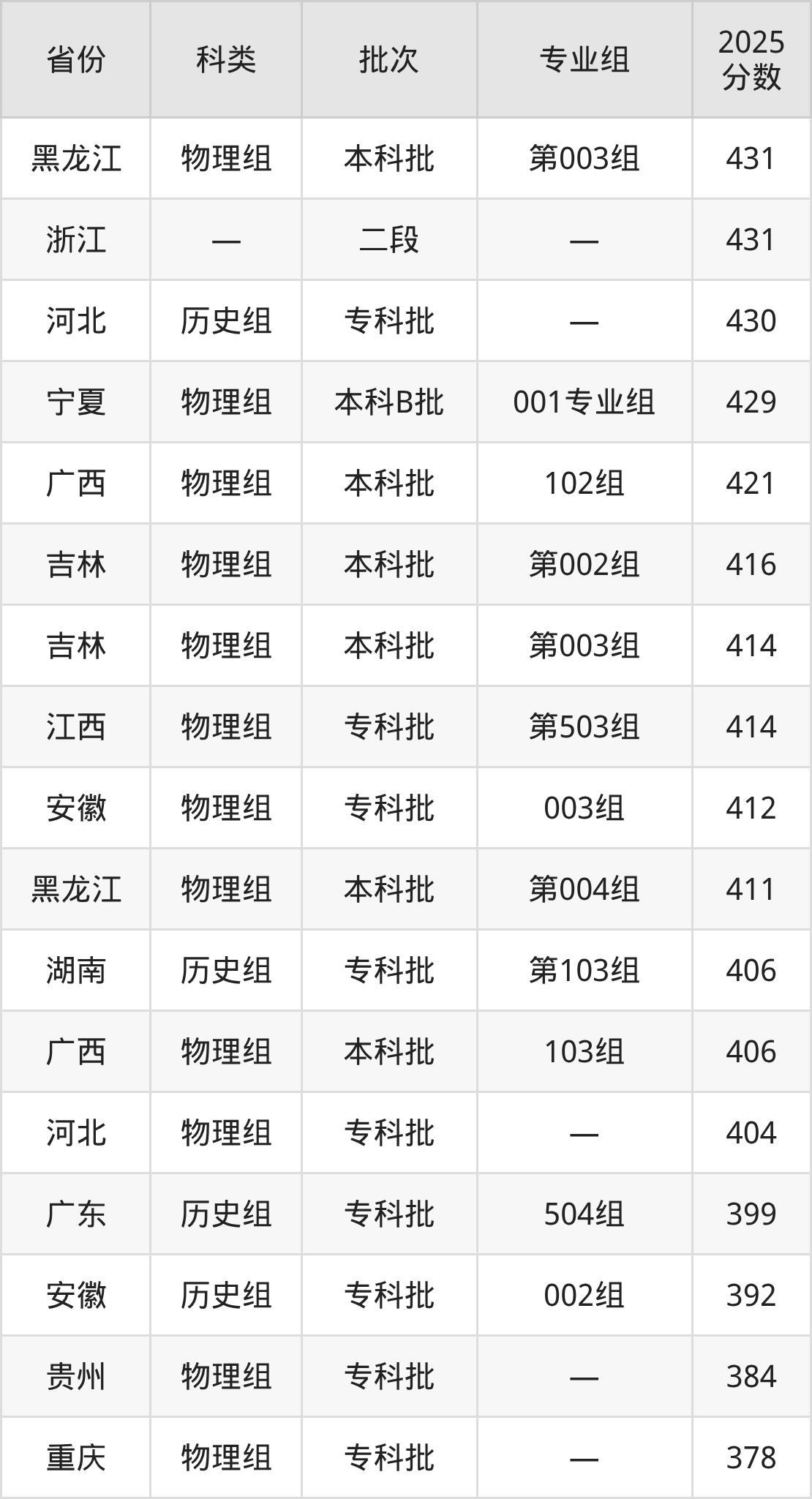 下面是河北科技工程职业技术大学2025年在全国各省的录取分数线一览表,供参考: