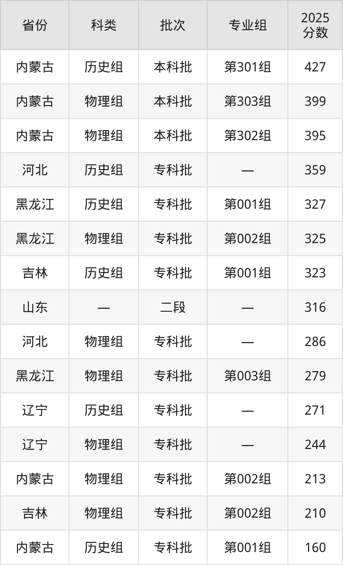 下面是兴安职业技术大学2025年在全国各省的录取分数线一览表,供参考: