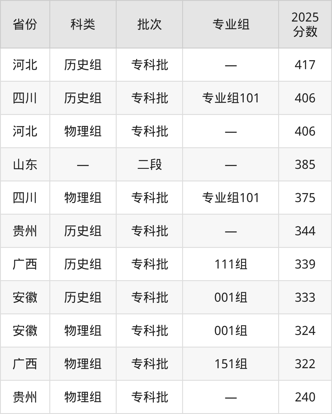 而河北地区历史组考生的分数门槛最高,2025年广西体育高等专科学校在河北招生最低分为417分,考生至少要超专科线217分才有可能被录取。